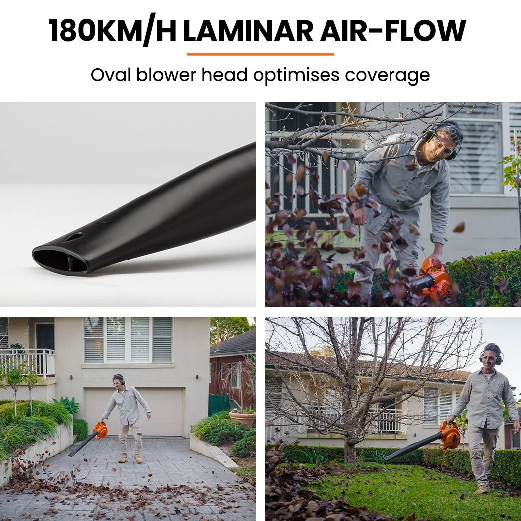 Built with a double crankshaft for smooth, stable running, this blower combines lightweight maneuverability with serious blowing force. The extendable flat nozzle offers precise directional air control that reaches further, ideal for cleaning under shrubs or along tight edges. This model is optimized for pure blowing performance. Easy-start recoil ignition gets you going with minimal effort, while the ergonomic nylon handle gives you better grip and control.