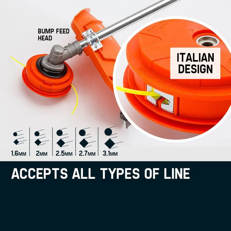 Utilisingpremium anodized commercial alloy,your MTM featurescommercial grade quick connect couplingsequipped withdual ball-bearing floating centres. Adjust the extension poles and tackle those hard to reach branches, equipped with genuine commercial nine spline fastening ensures maximum stability - a must for safely tackling those hard to reach branches. Built tough, your MTM boasts unparalleled levels of quality backed by an extensive12 month warranty.Buy now and this amazing package comes loaded with abonus accessory kit,including gloves, earmuffs, mini toolkit and fuel mixer.