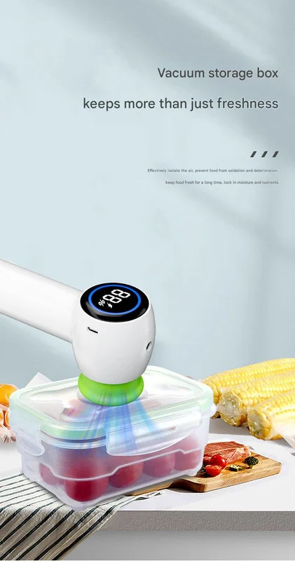 Extend the freshness of your food and enjoy ultimate versatility with our Multi-Function Handheld Vacuum Sealer. This powerful and portable device is designed to effortlessly remove air from compatible vacuum bags, containers, and mason jars, locking in flavor, moisture, and nutrients. By creating a low-oxygen environment, it helps prevent food oxidation, allowing you to eat healthier and reduce waste. Beyond food preservation, this all-in-one tool also functions as an inflator for sports balls and an emergency bag sealer with its built-in clip. The clear LED display shows the battery percentage, ensuring you always know how much power is left. It's a must-have gadget for modern housekeeping, making food preservation, storage, and even sports equipment maintenance easier than ever.