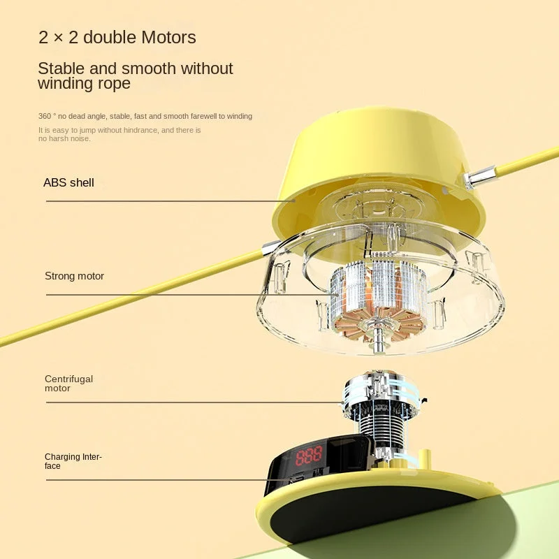 Step up your fitness routine with the Multi-Person Intelligent Rope Skipping Machine. Designed for group fitness and individual workouts alike, this cordless jump rope is equipped with an intelligent digital counter that tracks your jump count, ensuring an effective and fun workout. The sleek design is powered by a rechargeable USB battery, allowing for easy, hassle-free use at home, outdoors, or in the gym.