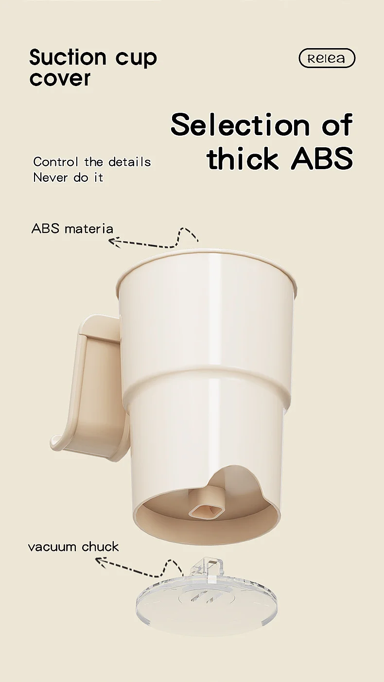 Prevent accidental spills and keep your essentials organized with this innovative Multi-Purpose Cup Holder. Featuring a powerful vacuum suction cup base, this holder firmly adheres to any flat, smooth surface, ensuring your drink remains stable and won't get knocked over. It's designed with a large-caliber opening to accommodate a wide variety of cup types, suitable for both hot and cold beverages. Made from thick, durable ABS material, it also includes a convenient detachable phone holder, allowing you to enjoy drinks while watching videos. This versatile item can also be used as a desktop organizer or pen holder, making it a perfect companion for your study, office, or leisure time. The reusable suction cup leaves no trace and can be repositioned as needed.