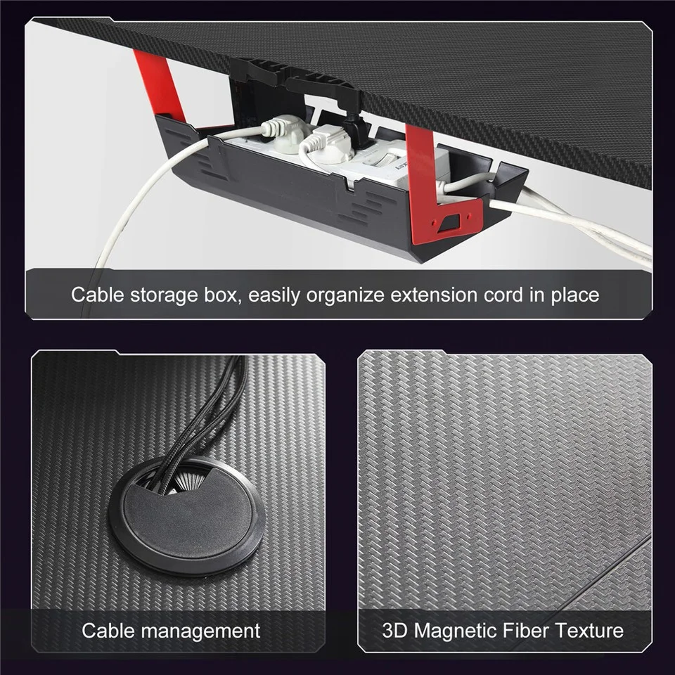 This professional gaming desk is designed to enhance both gaming and work experiences, making it ideal for gamers, streamers, and home office use.