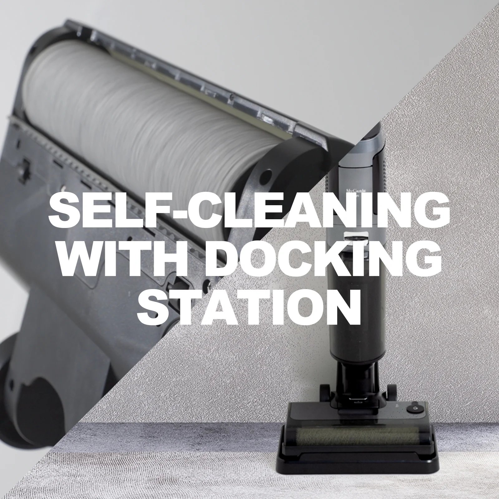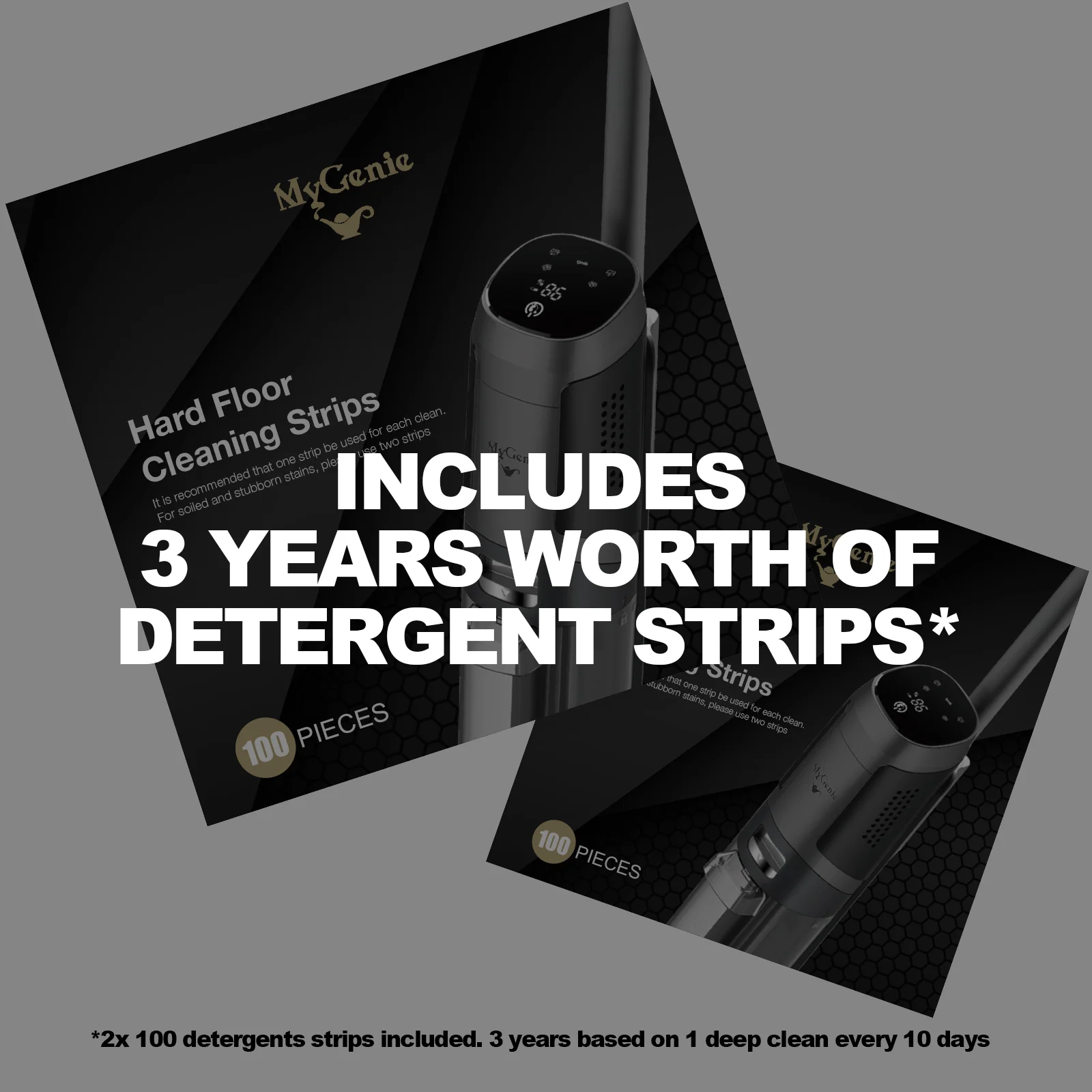 Use the supplied dissolvable cleaning strips in the front water tank making a detergent solution to power mop your floor quickly and easily. Once completed use the self-cleaning function and included stand to clean the Mop head and tanks.