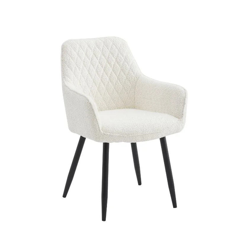 Indulge in the epitome of comfort and style with this exquisite chair. Its plush, quilted upholstery in a soothing cream hue creates a cozy and inviting atmosphere. The sleek black metal legs offer a striking contrast, adding a touch of contemporary elegance. Perfect for any room, this chair is the ideal blend of form and function.
