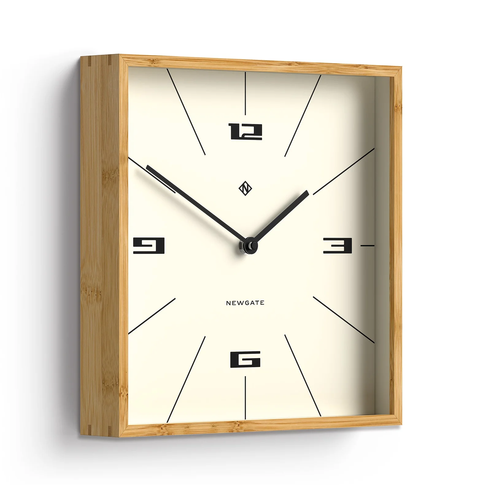 Newgate Fiji Wall Clock - Hovercraft Dial A modern square wall clock with a bamboo case and a minimalist Scandi-inspired design combining functionality with beauty. This case comes with three dial options.