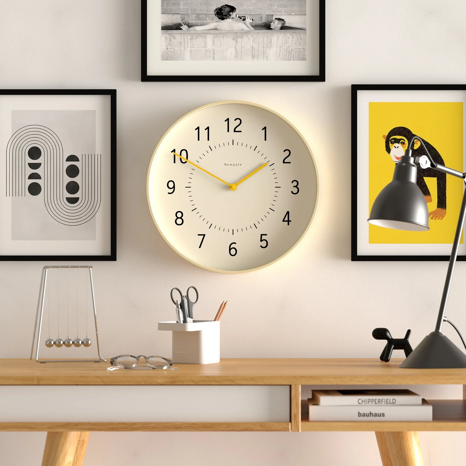 Newgate Monopoly Plywood Wall Clock With Yellow Hands A Scandi wall clock with a modern pale plywood case and a minimalist graphic dial, with colourful yellow hands. Ideal within a contemporary interior this large wood wall clock creates a modern focal point in the kitchen, living room or office.