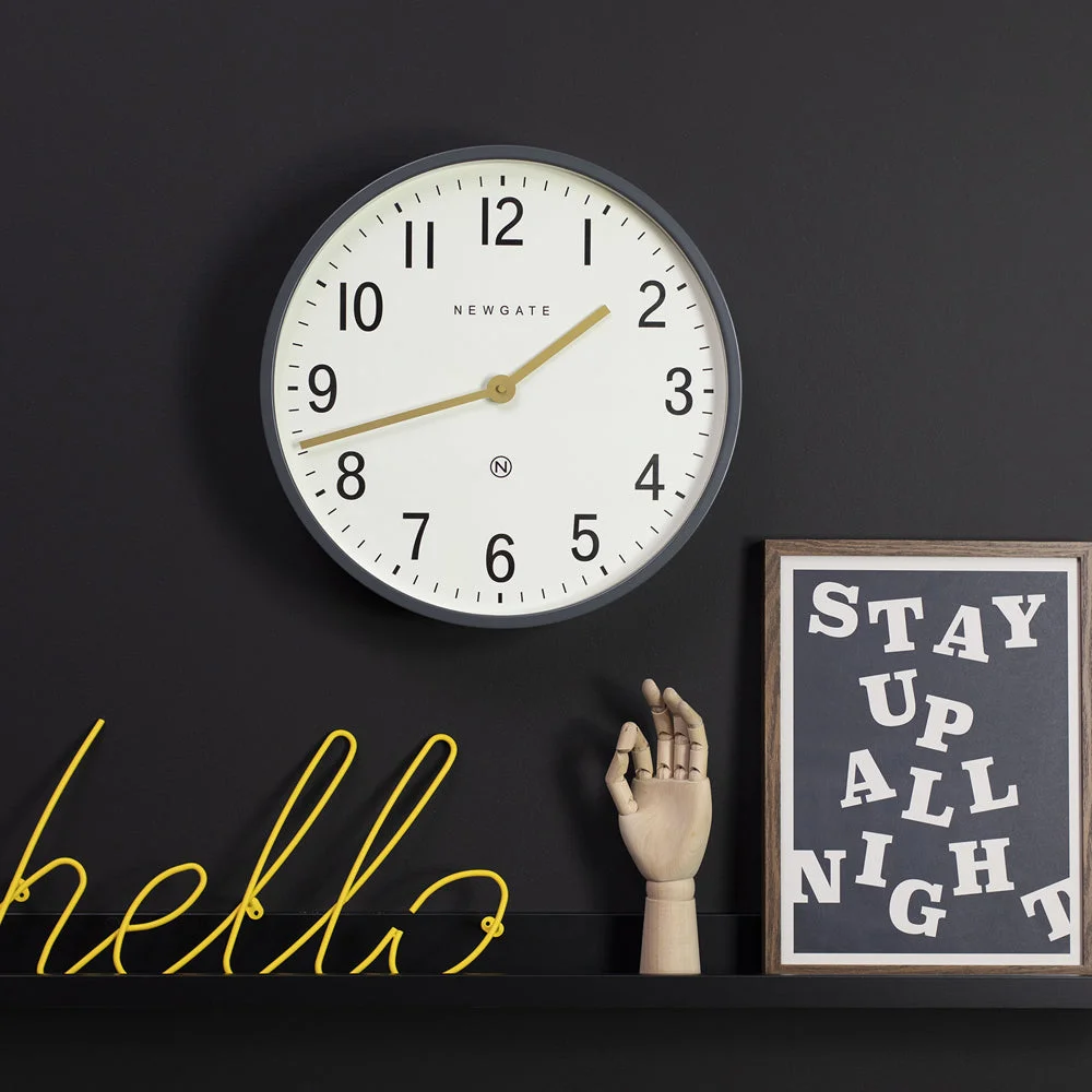 Newgate Mr Edwards Clock Matte Blizzard Grey A large grey wall clock fusing mid-Century modern design with contemporary minimalist style.