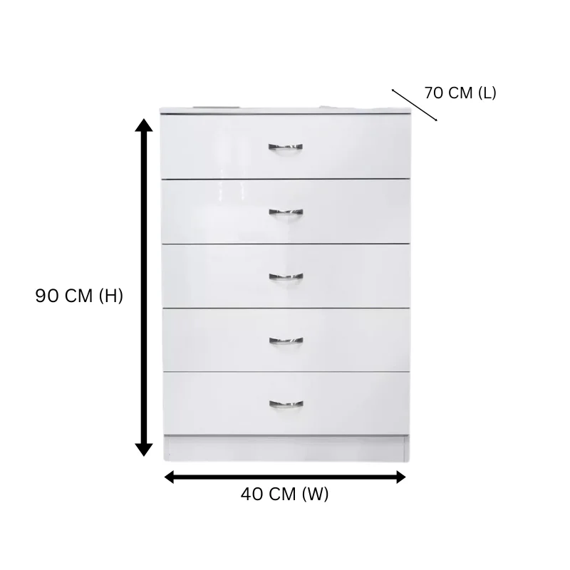 Product Dimensions of 5-Drawer Chest Storage: 70 cm (L) x 40 cm (W) x 90 cm (H)