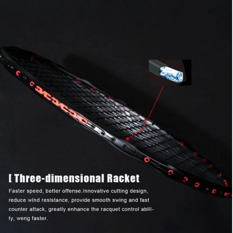 Constructed with T50 100% full carbon fiber, the racket boasts exceptional strength and flexibility, ensuring long-lasting performance. The lightweight design (5U, ≤80g) with a G5 handle thickness offers an ergonomic grip, allowing for precise control and comfortable play.