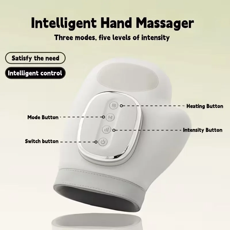Features: 3 Modes (Massage Only / Heat Relax / Combo), 5 Intensity Levels, Full Palm Finger Coverage, Button Control