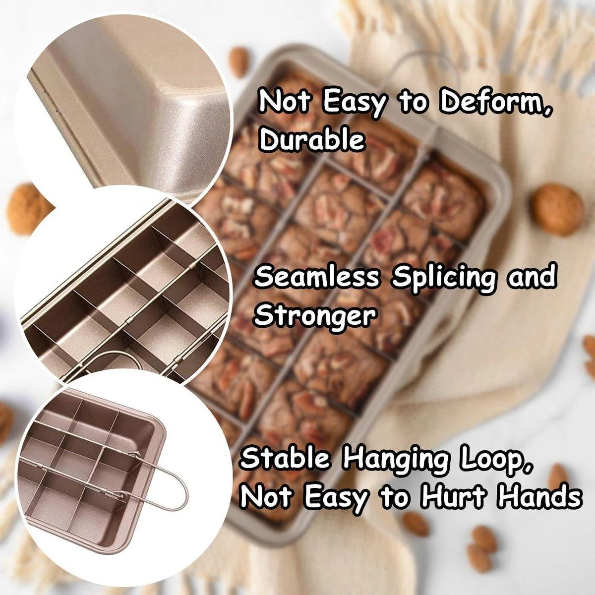 This high-quality square baking pan with a non-stick surface ensures effortless baking and cleaning. Designed for versatility, it is ideal for baking cakes, brownies, lasagnas, and more. The included dividers allow for perfectly portioned treats every time, making your baking sessions more convenient and efficient.