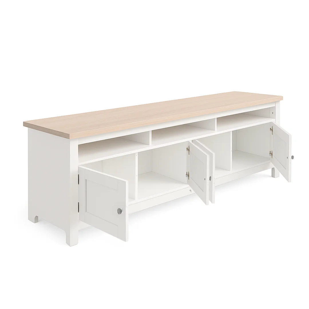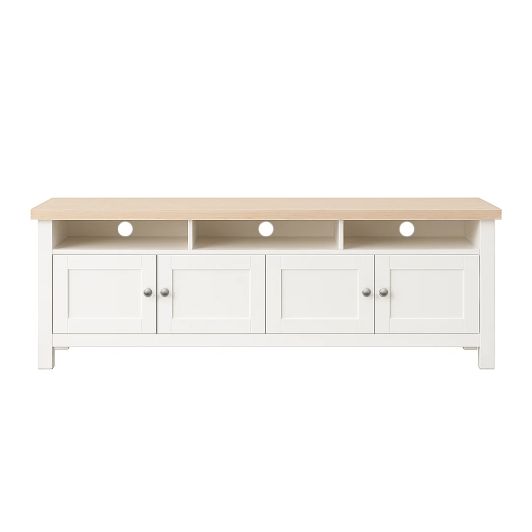 The Noosa Entertainment Unit combines coastal elegance with practical storage. Featuring a crisp white base and warm oak-look top, this piece brings relaxed sophistication to any living room.