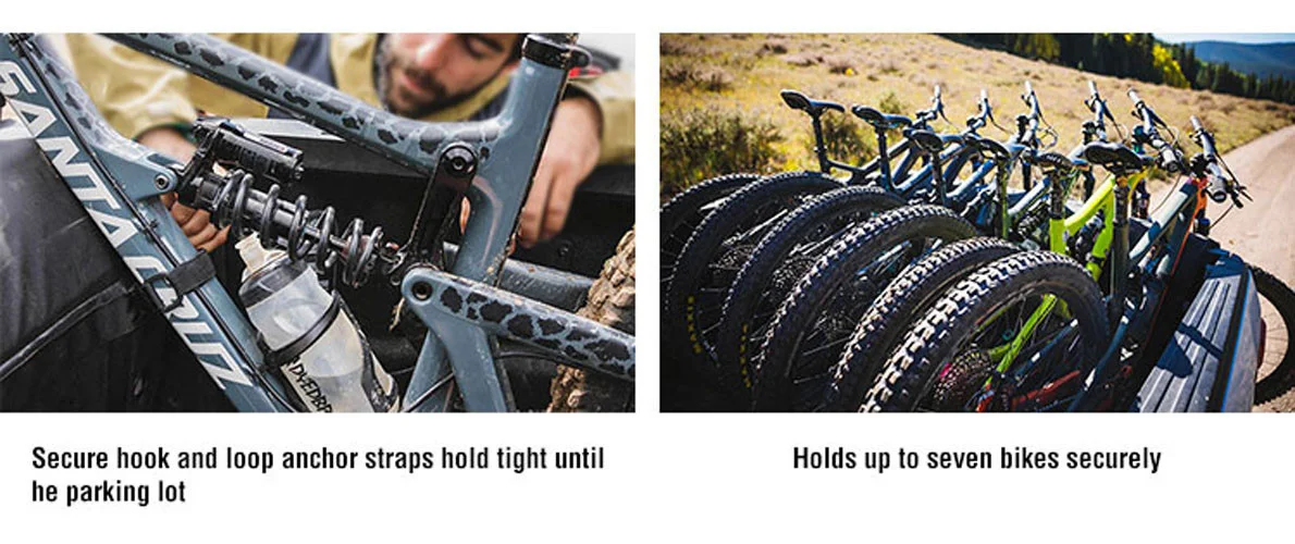 Four straps wrap around your tailgate to keep the pad secure, and two lockable grommets enable you to run a cable lock through all of your bikes, keeping them secure when you stop for your post ride pilsner and pizza.