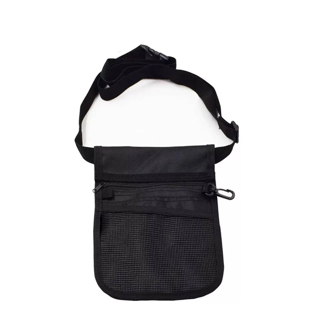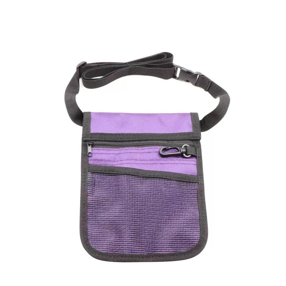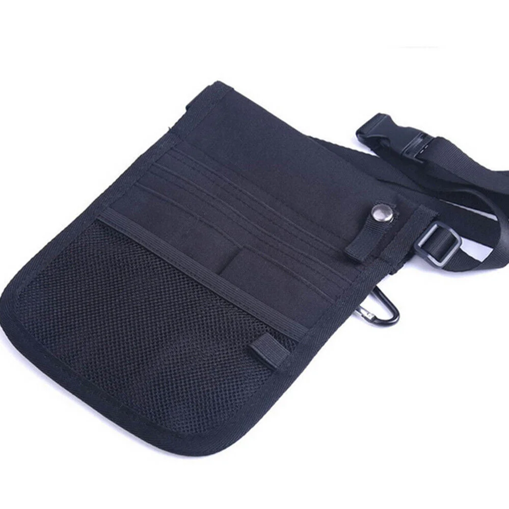 This nurse pouch waist bag is a practical and durable storage solution designed for healthcare professionals. Made from waterproof PVC polyester, it features multiple compartments and pockets to organize essential tools. With a dedicated space for scissors, pens, and handover sheets, plus a zipped pocket for valuables, it ensures easy access during busy shifts. The adjustable belt fits comfortably around the waist, while the included plastic key ring and clip-on holder add extra convenience.