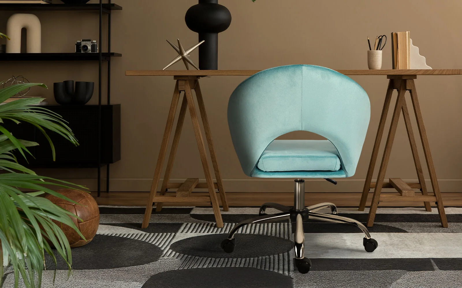 La Bella Office Desk Chair - Velvet Home Office Swivel Computer Seat COVE - Blue