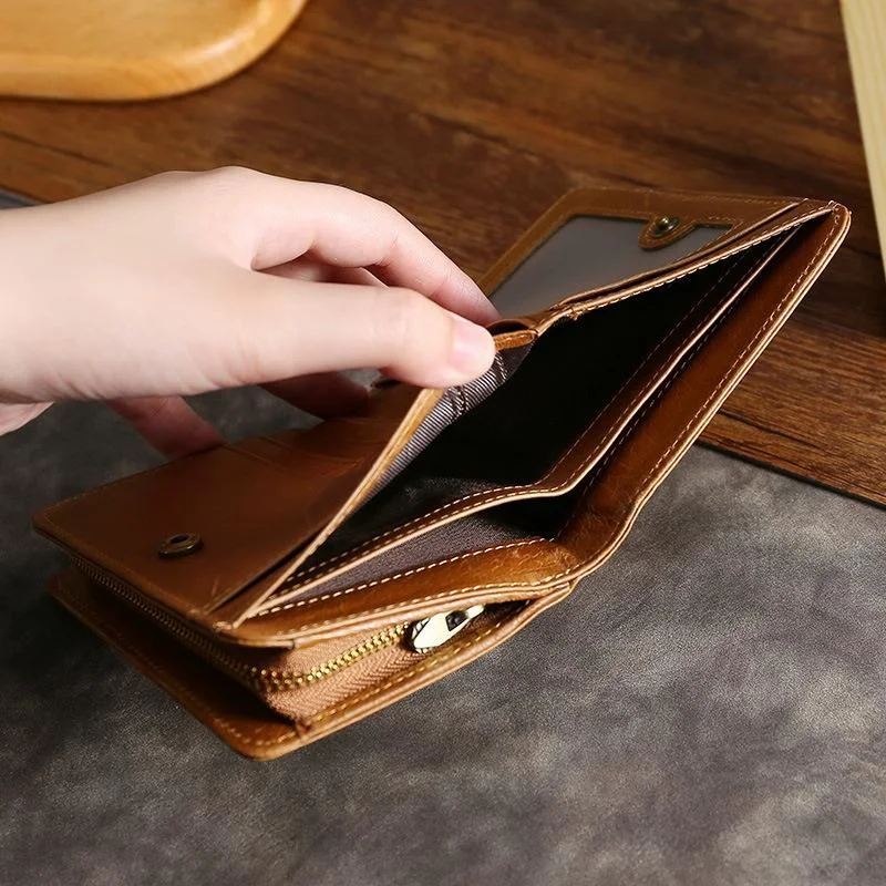 Zip Rfid Crazy Horse Leather Wallet - Brown - Yellowish-Brown