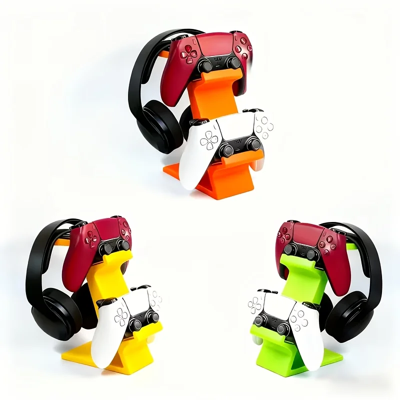 Designed specifically for PlayStation 5 and Xbox players, this multi-functional controller stand features an integrated 3-in-1 design, easily organizing two controllers and a pair of headphones to restore order to a cluttered desk. The main body of the stand is made of lightweight and durable material, weighing only **175g** in totallight yet stable, saving space. The surface is finely crafted to fit the contours of the controllers, providing a natural placement that prevents slipping.