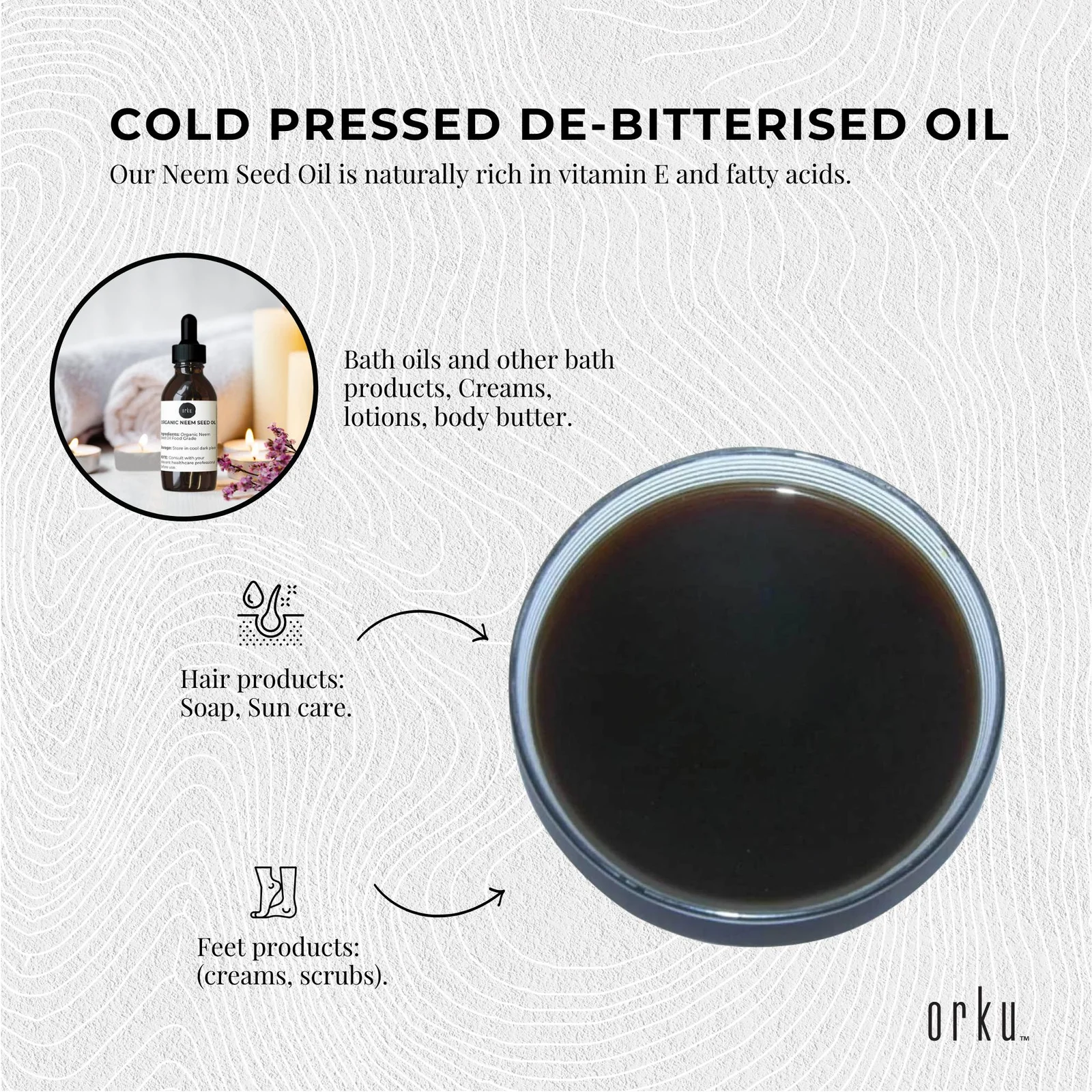 Our Neem Seed Oil is naturally rich in vitamin E and fatty acids. It is Pharmaceutical grade and double filtered.