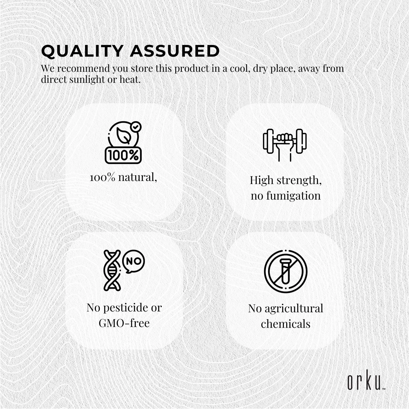 Our Orku one-time cold-pressed pure Ethiopian Black Seed Oil, is 100% natural, containing one of the highest levels of Thymoquinone (TQ). Slightly filtered, our black seed oil is non-refined, with no additives or  preservatives, no agricultural chemicals or pesticides and is GMO free.