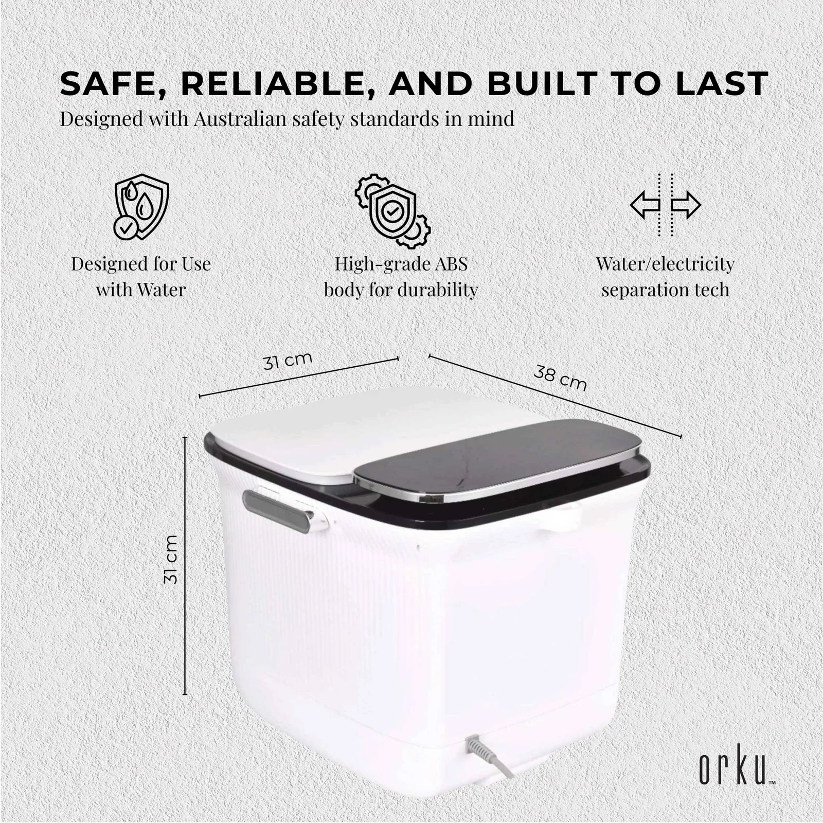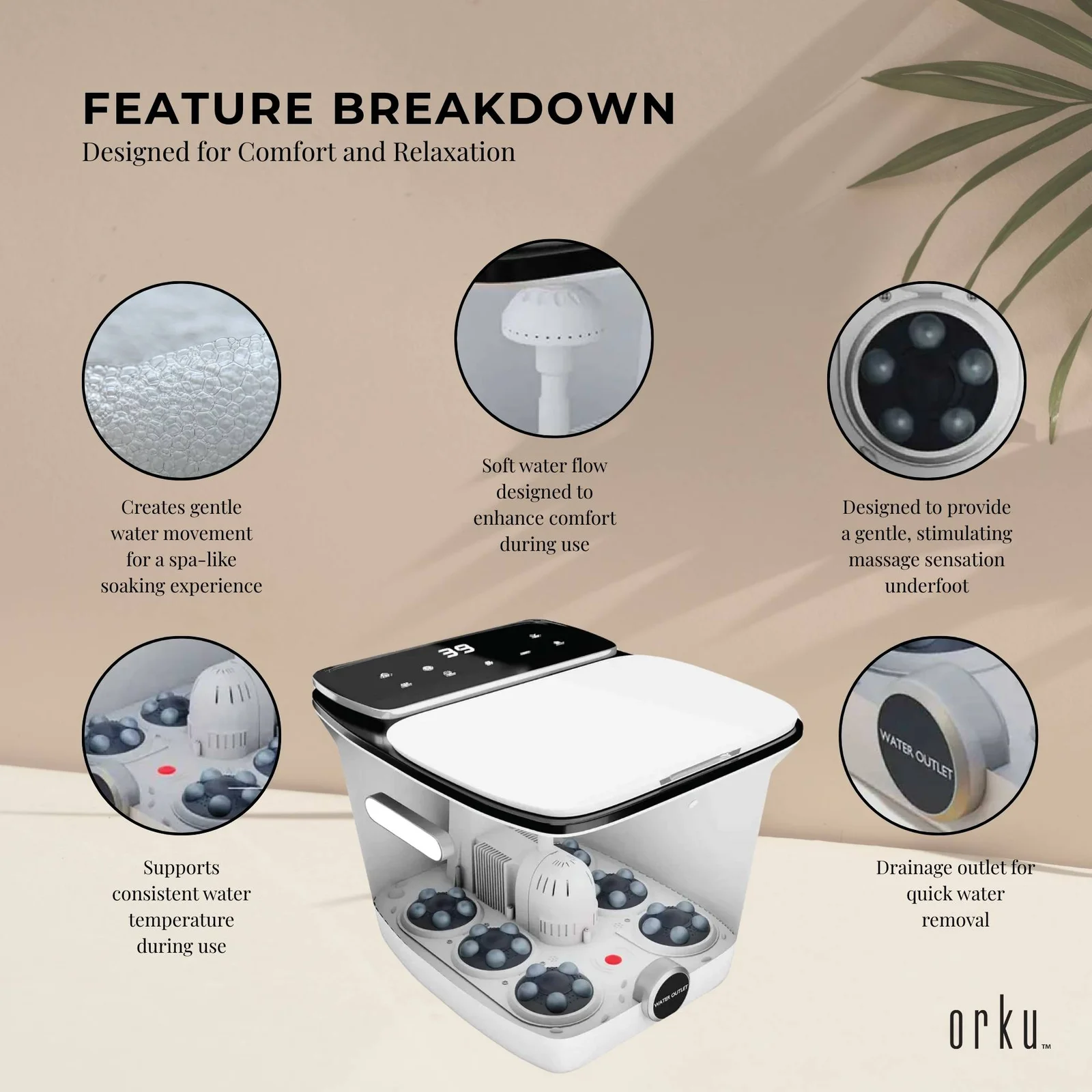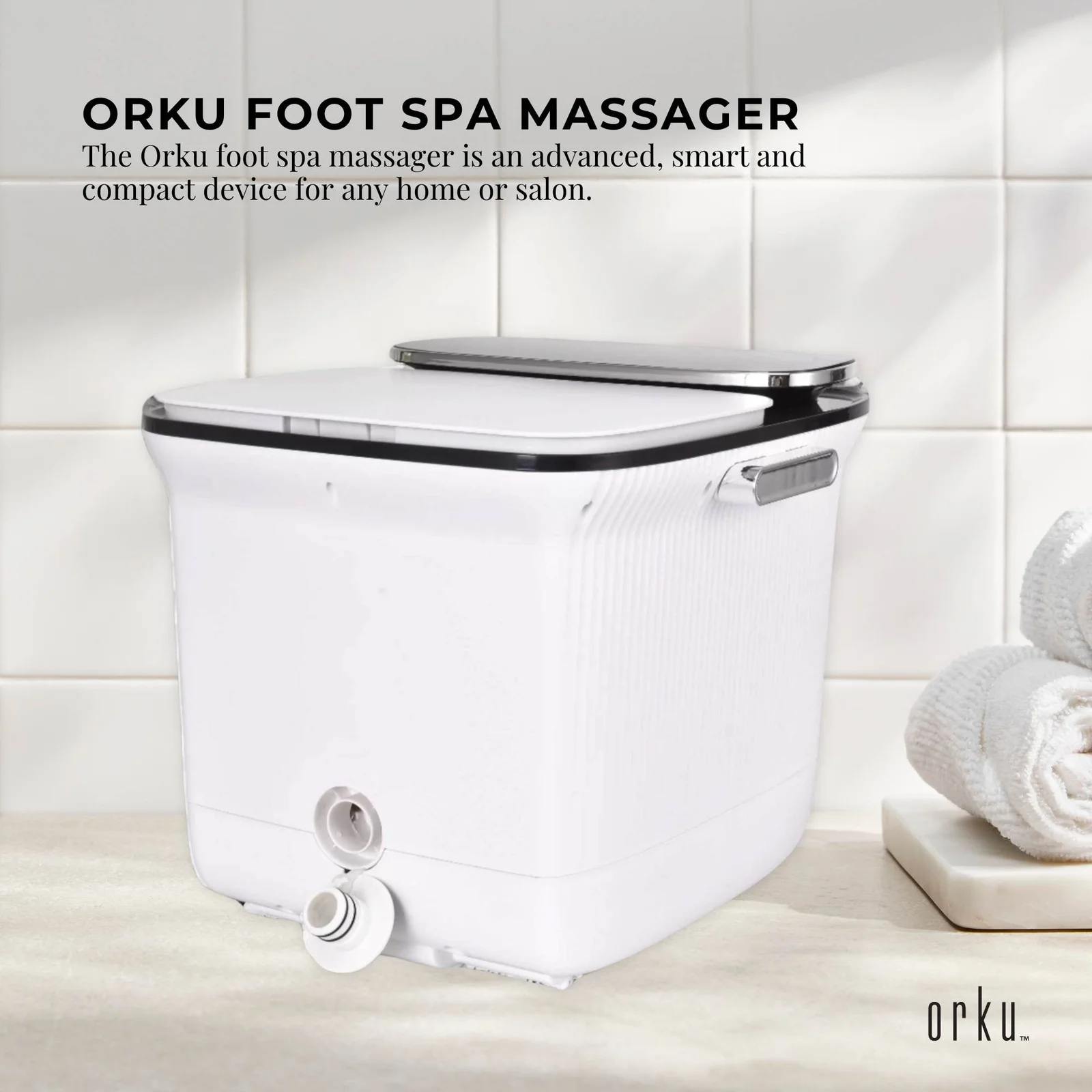 The Orku foot spa massager is an advanced, smart and compact device for any home or salon. This innovative automatic water temperature controlled bath features a high tech, one button start, LCD touch control panel, and comes with a remote control to conveniently adjust your massage to you liking.