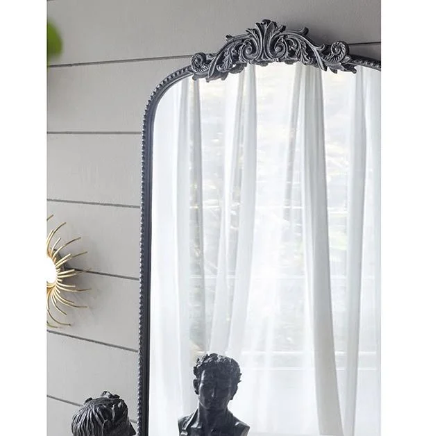Part of a brand new trio collection of ornate mirrors, our ornate metallic wall mirror adds depth to spaces, as well as attracting brightness. The rectangular frame has been crafted from metal and the ornate floral accents coupled with the frames hammered effect have been inspired by the baroque period. For maximum effect hang the ornate metallic wall mirror above cabinets, consoles and sideboards to add more light to dark spaces and brighten signature furniture pieces, as well as rooms.