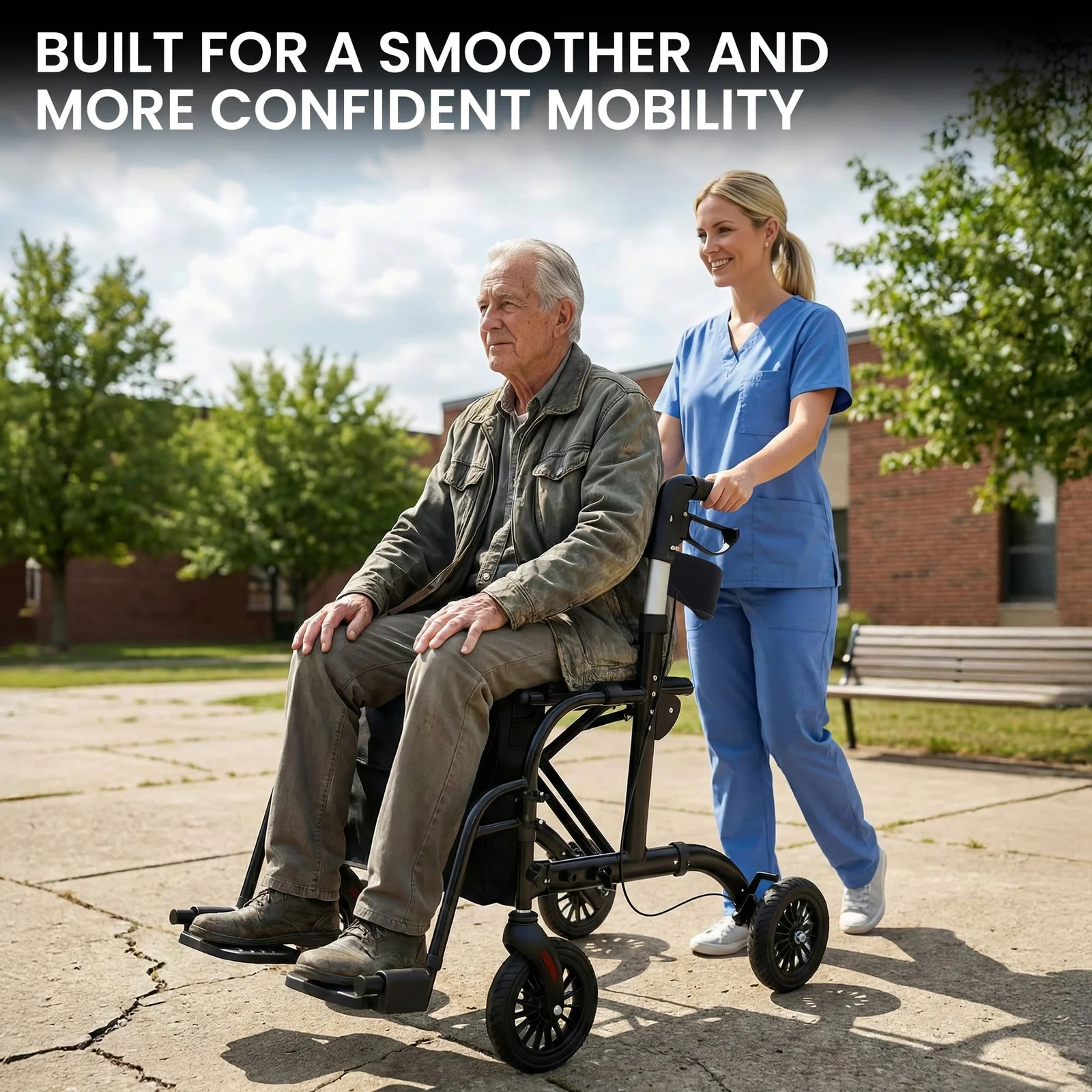 - Rollator and wheelchair in one versatile equipment