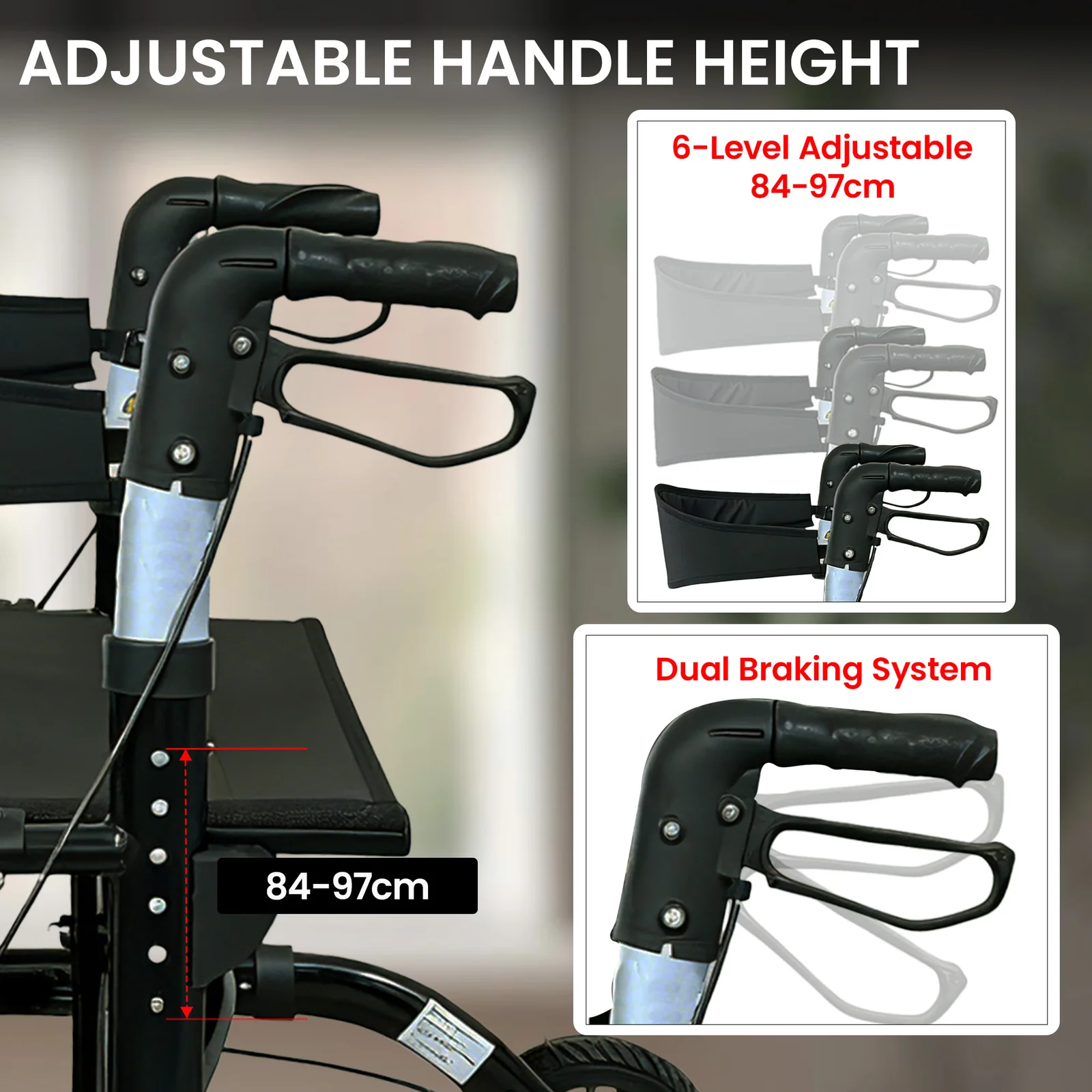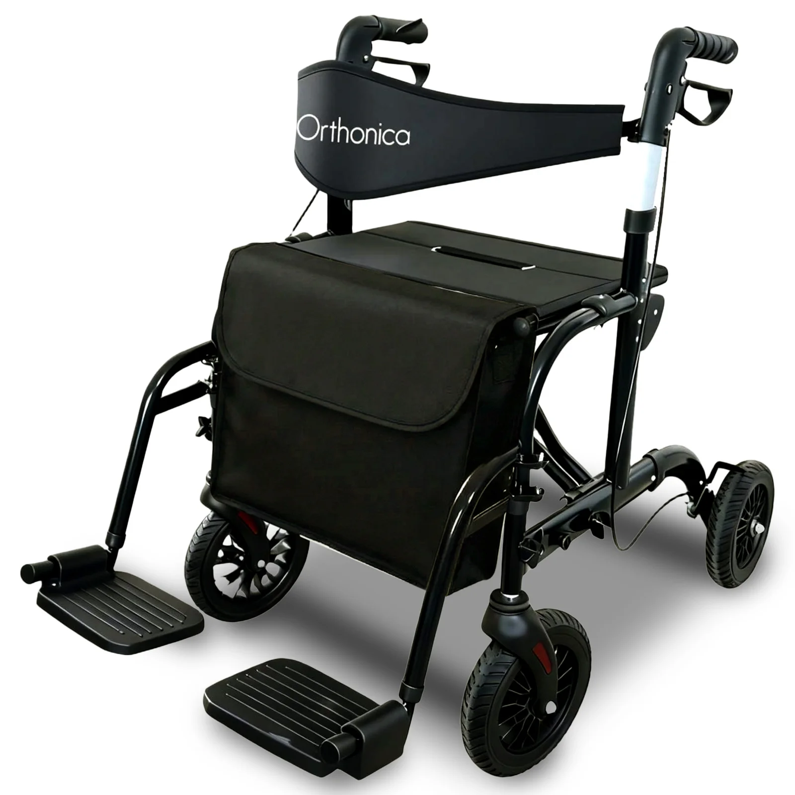 - Flip back backrest for switching between rollator and wheelchair mode
