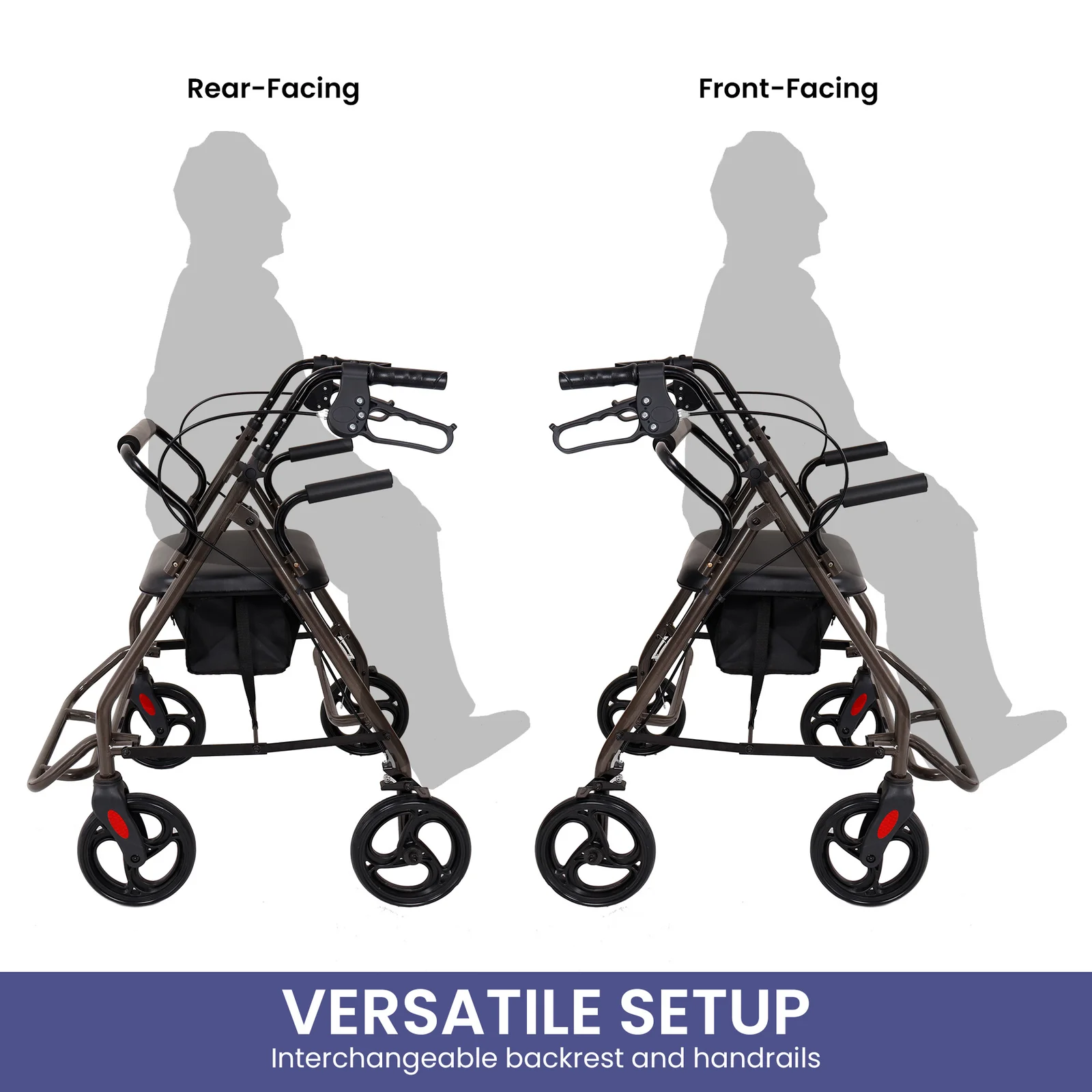 This foldable rollator walker by Orthonica is a great choice for anyone needing a little extra help getting around. Its made with a sturdy foldable steel metal frame, designed for durability and offers great convenience. Its compact design makes it easy to store and take with you wherever you go. Plus, the adjustable handles are perfect for people of all heights, making sure you stay comfortable and maintain good posture during use. And the padded seat with storage ensures you or your loved one will always have a place to rest on the go!