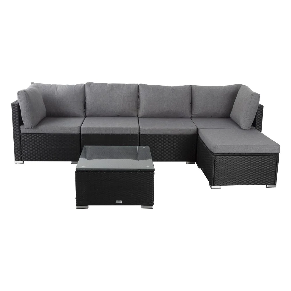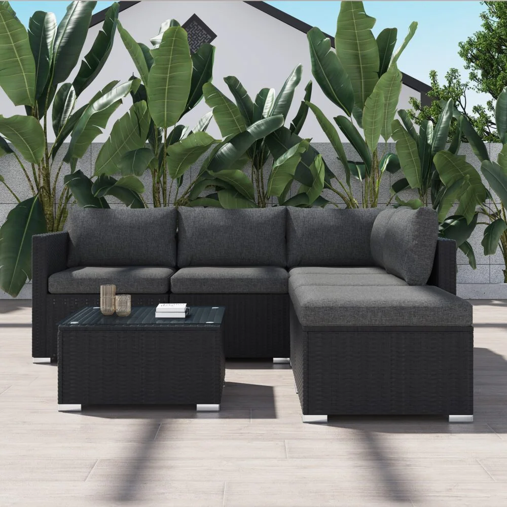 This set comes with an easy-to-assemble ottoman and coffee table, so you have the perfect setting for any occasion. The weather-resistant wicker is made with a sturdy steel frame for an investment that lasts a lifetime. The strong tempered glass tabletop perfectly sits meals, drinks, and any games you your party have in mind. You decide how to customize the shape for your space!