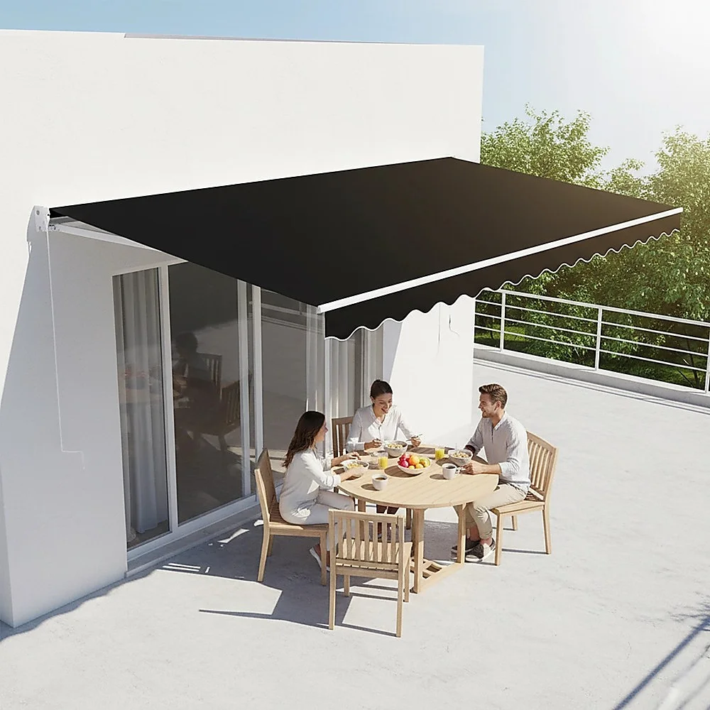 Designed to last, this awning features a rugged aluminium frame, powder-coated for extra protection. Wind-resistant, UV-resistant, rust-resistant, fade-resistant and water-resistant, this awning will serve you well for years to come. The shade itself is made from 300-gsm high-quality 100 per cent polyester that stands up to whatever Mother Nature throws at it, while its neutral black profile adds kerb appeal to your home.