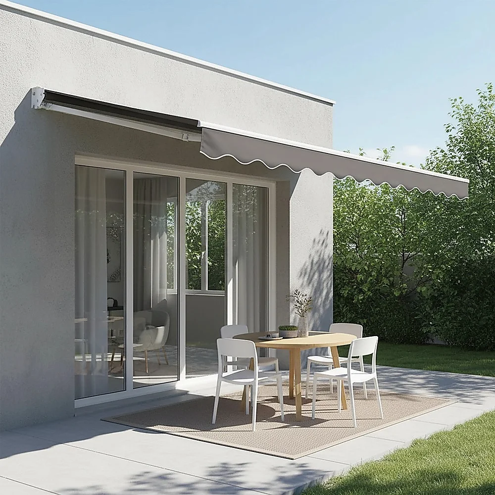Designed to last, this awning features a rugged aluminium frame, powder-coated for extra protection. Wind-resistant, UV-resistant, rust-resistant, fade-resistant and water-resistant, this awning will serve you well for years to come. The shade itself is made from 300-gsm high-quality 100 per cent polyester that stands up to whatever Mother Nature throws at it, while its neutral grey profile adds kerb appeal to your home.