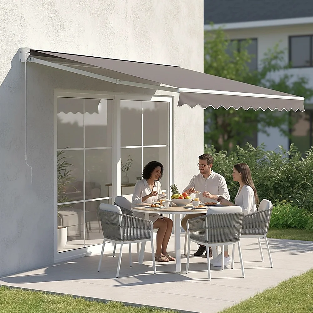 With summer just around the corner, it's time to start preparing your home to handle scorching heat and the sun's incessant rays. Bariloche's 4.0 m x 2.5m folding arm outdoor retractable awning is just the thing to protect you from the hot summer sun. Since it folds up easily with only the turn of a hand crank when you don't need its protection, you can retract it when you want more sunshine. Wall brackets make for easy installation, yet we do recommend you use a professional installer to make sure the installation is done right.