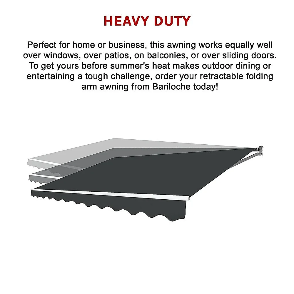 With summer just around the corner, it's time to start preparing your home to handle scorching heat and the sun's incessant rays. Bariloche's 5.0 m x 3.0 m folding arm outdoor retractable awning is just the thing to protect you from the hot summer sun. Since it folds up easily with only the turn of a hand crank when you don't need its protection, you can retract it when you want more sunshine. Wall brackets make for easy installation, yet we do recommend you use a professional installer to make sure the installation is done right.