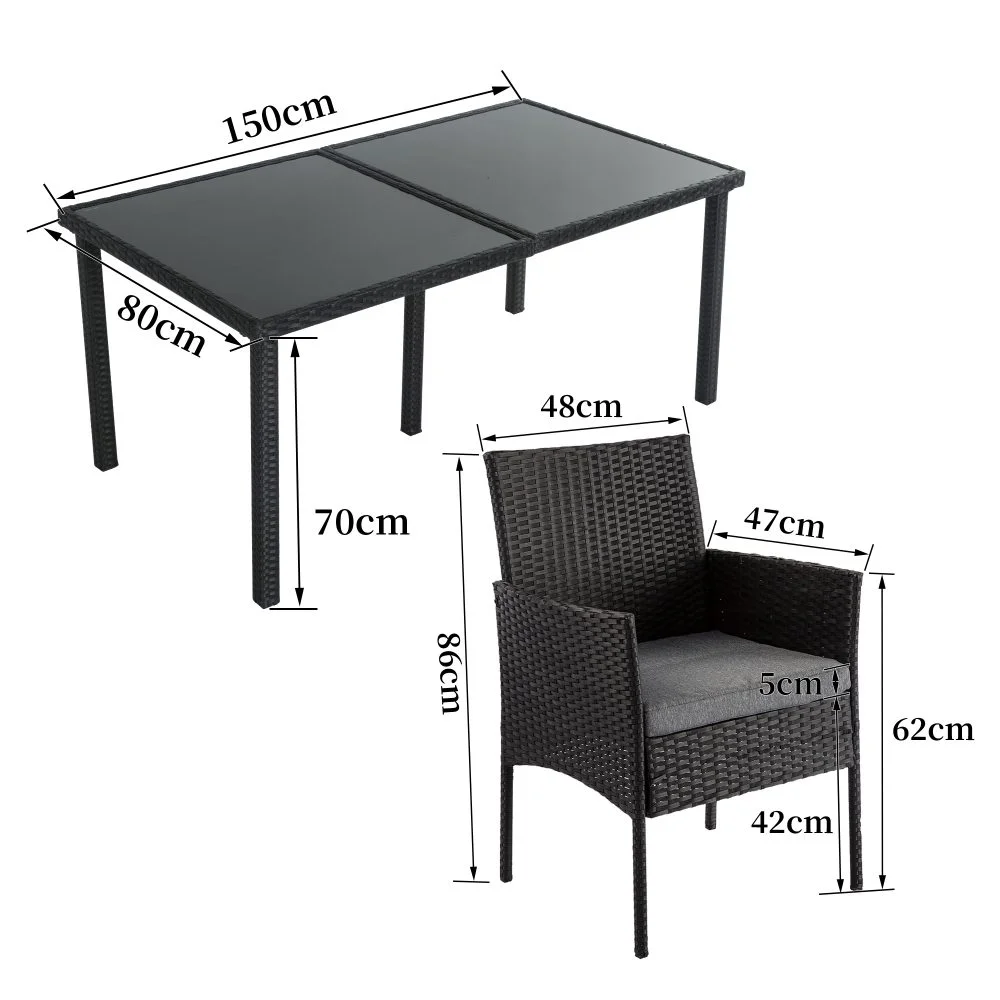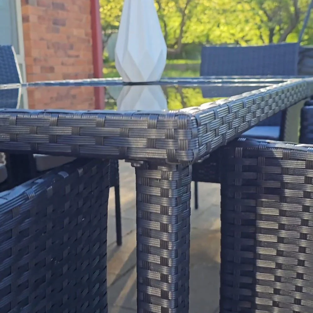 This table can accommodate 6 seats around it, which can be used by many people. The space is very sufficient. Its sturdy and practical design also makes it practical to use throughout the year, both firm and weather proof. Toughened glass countertop is firm and weather resistant, and UV protection and anti-aging rattan ensure that your tableware will look brand new in the coming years.