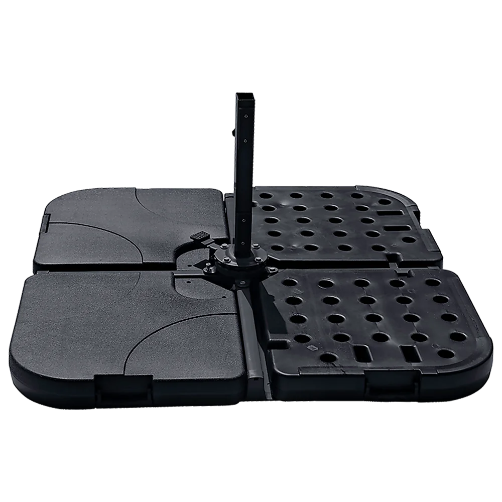 Crafted from heavy-duty HDPE with fade-resistant UV protection, this umbrella base weight is designed to last. With its four-plate construction, this base works with not only four-plate configurations but with two- and three-plate configurations as well, depending on your needs and those of your space. Each of the four parts can weigh up to 15 kilograms, giving the entire base a hefty 60.6 kilograms of support for your umbrella.
