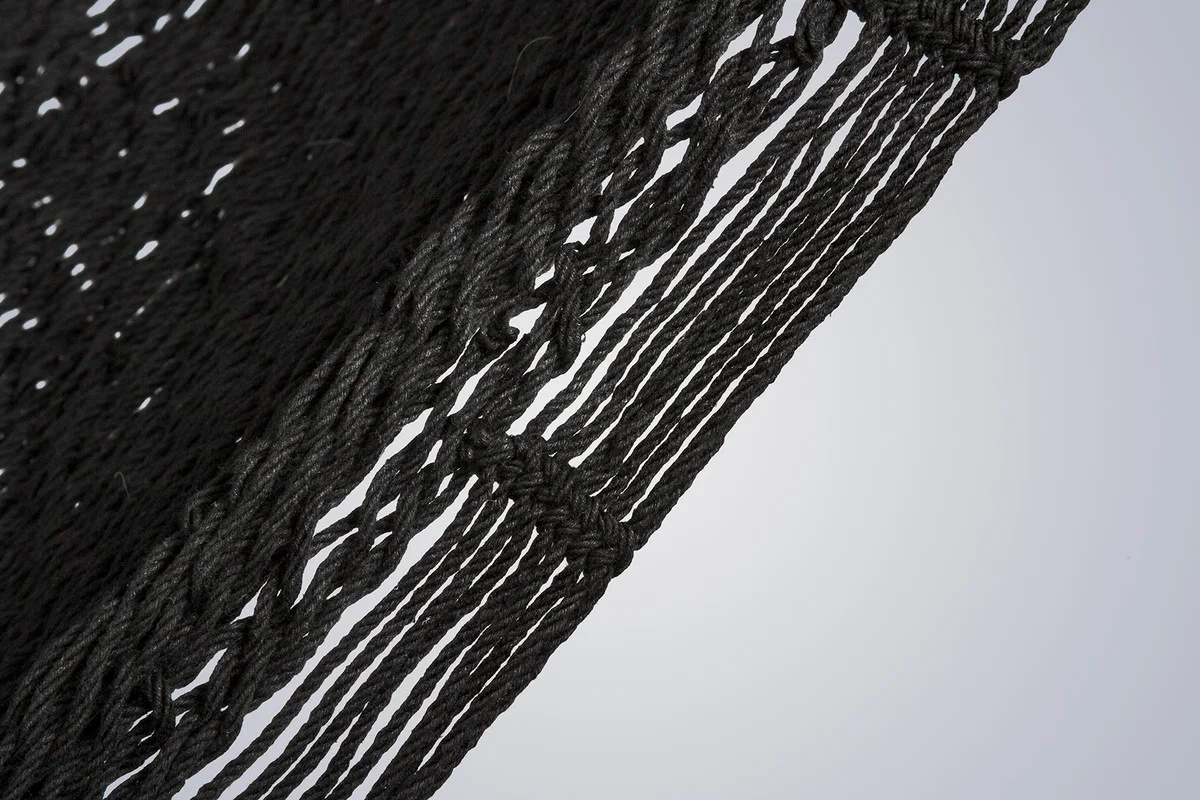 Outdoor cotton hammocks are built for heavy use or play in the great outdoors. They're pet and child friendly and are more weather resistant than our traditional cotton hammocks; the cotton string is 3 to 4 times thicker. Hanging these hammocks undercover will ensure a long life. If hung outside just unhook them when not in use, easy to do with our Tree Straps.