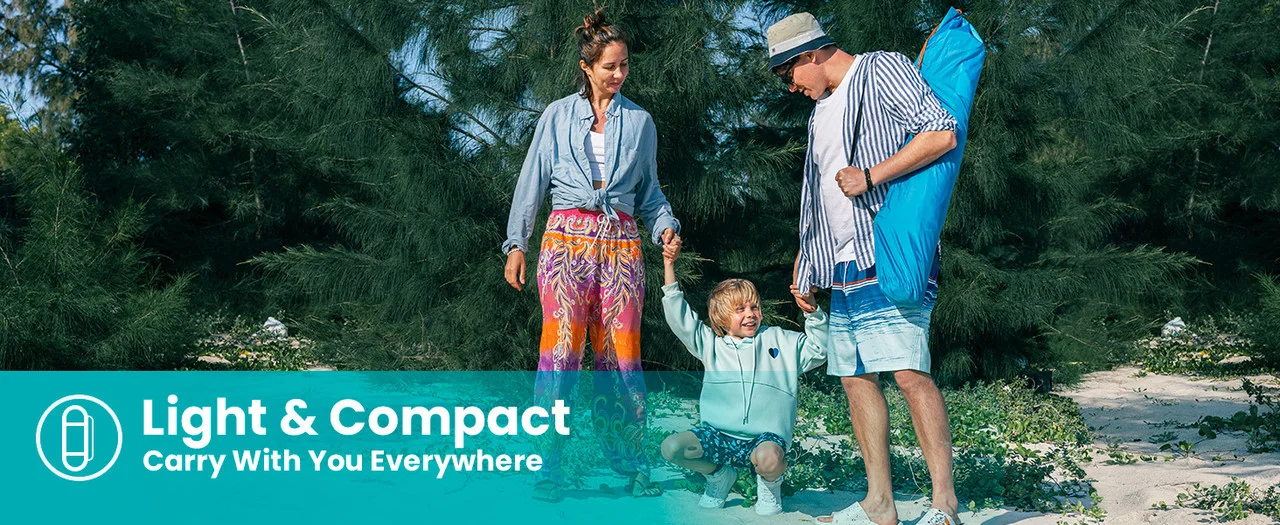 This Portable Pop Up beach tent boasts a unique circular design, providing a 20% increase in capacity compared to regular triangular designs. With enough room for 2 adults and 1-2 kids to comfortably sit inside, it is an ideal choice for family road trips, camping, or backpacking.