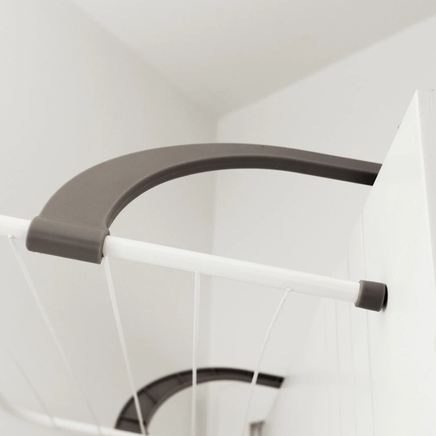 Arms fit over any standard door to provide 5 rails of hanging space (approx 2.5m). Folds flat for compact storage. Wipe clean with warm soapy water when necessary. Door must be kept open when in use.