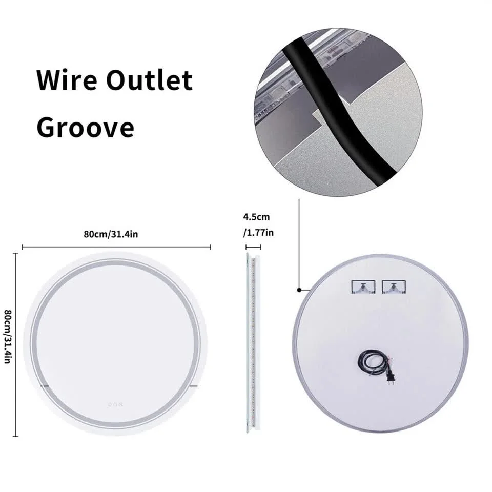 Ease Of Installation Round shape mirror offers aesthetics and functionality, which increases a rooms appeal also gives enough light for you. Easy to mount and hang the mirror to the wall near any electric outlet. Support wall switch control, cut the plug to connect to the wall switch wire. It must be done by professionals. Strong package, greatly reduces damage during transportation