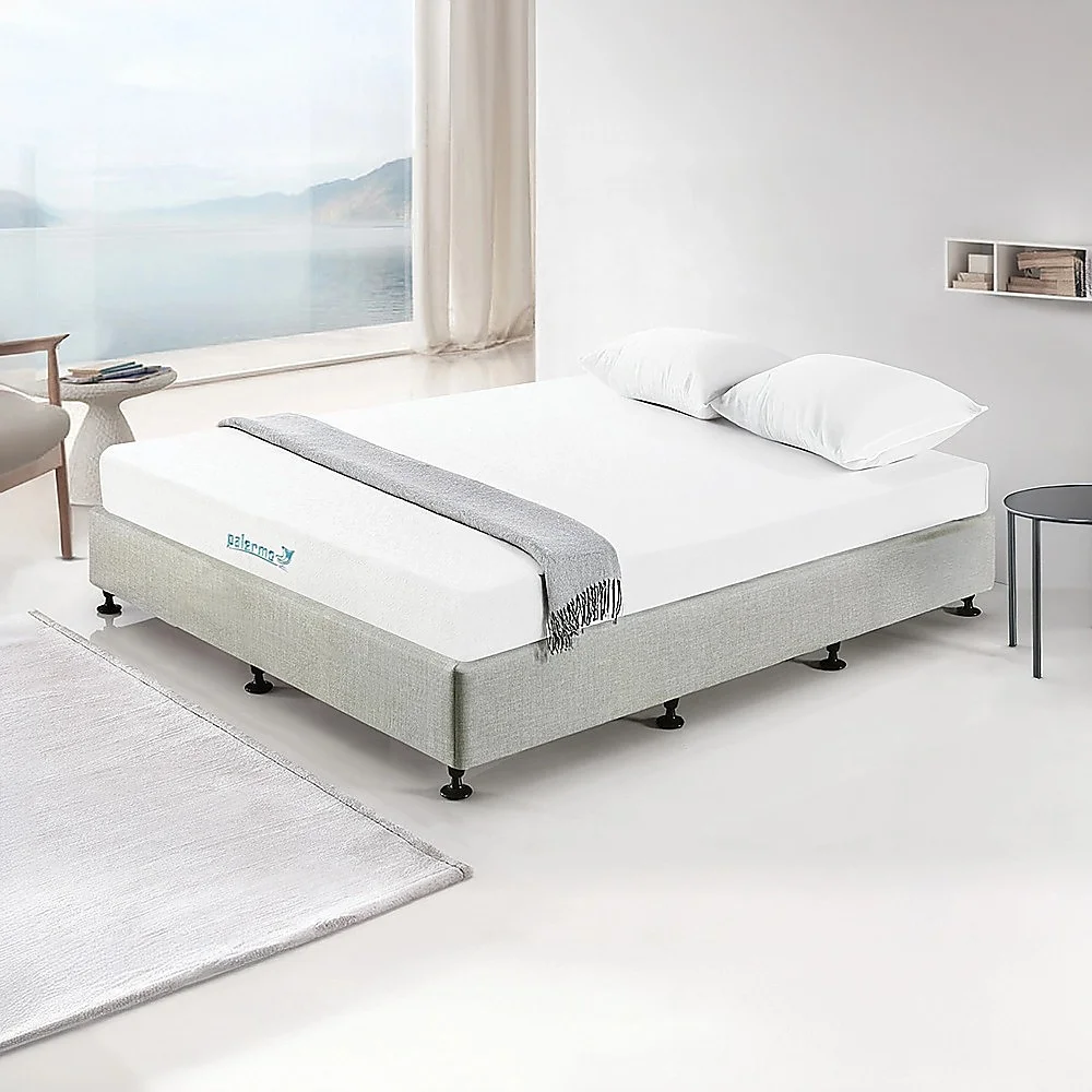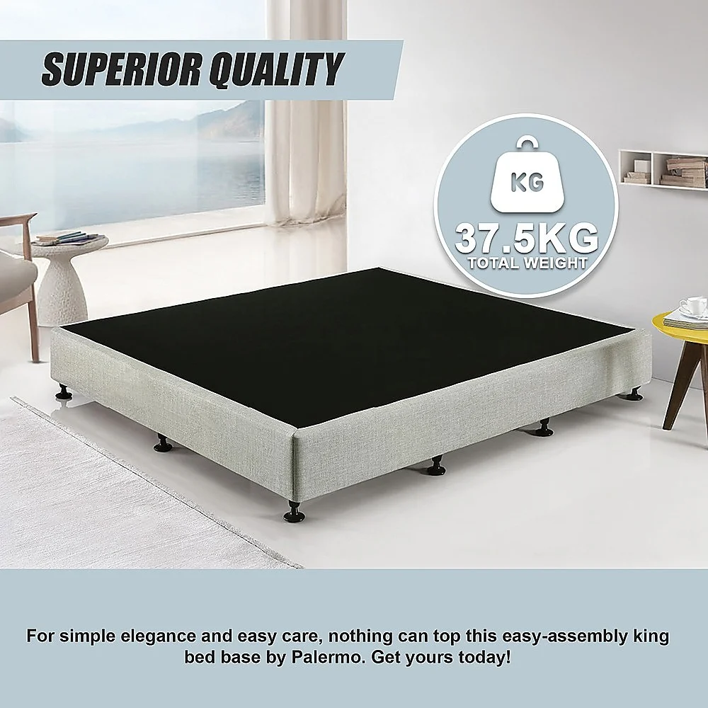 When you need a top-of-the-line bed base that's easy to moveeven upstairs and around tight corners--the Palermo King Bed Base is the perfect choice. Crafted from solid pine, its frame is easy to assemble, easy to take apartyet designed to last for a lifetime.Over the frame goes an easy-fit, double-padded Velcro slipcover, which turns it into a solid bed base. High-density foam cushions your body, giving you instant relaxation. Breathable linen fabric in a wide range of colours fits snugly on top, giving it a sleek, contemporary look. Gliders on the feet allow you to move it around the room with ease.