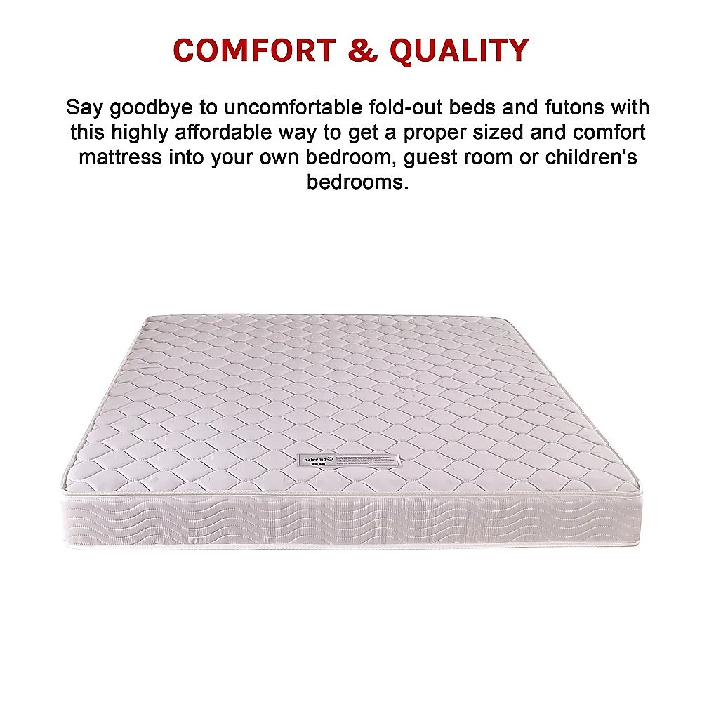 Say goodbye to uncomfortable fold-out beds and futons with this highly affordable way to get a proper sized and comfort mattress into your own bedroom, guest room or children's bedrooms. Ask yourself the question; why pay way more at over-the-top physical retailers? This unit is a fraction of the cost of the alternate over-priced mattresses out there in the physical retail marketplace. Ask yourself again, why pay more?