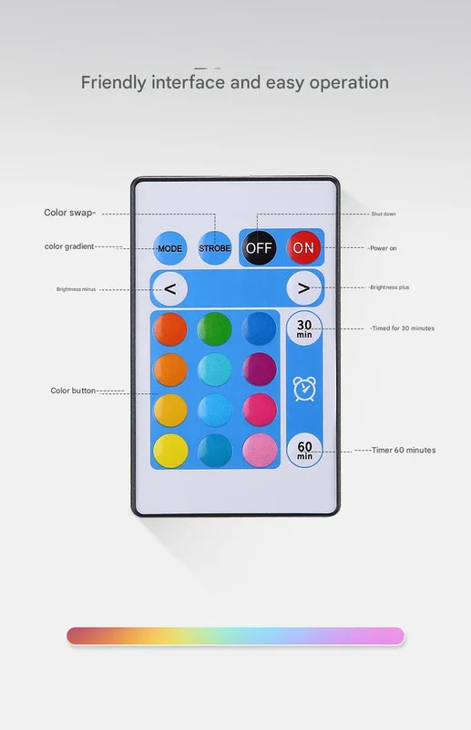This product contains a lithium battery. Please do not aim the projection light directly into eyes. Ensure the wall surface is clean, dry, and suitable for adhesive mounting before installation. For optimal battery life, charge fully before first use and avoid leaving it on the charger for excessively long periods after it is full. The remote control requires a battery (typically a CR2025/CR2032 button cell, check if included). Keep out of reach of very young children.