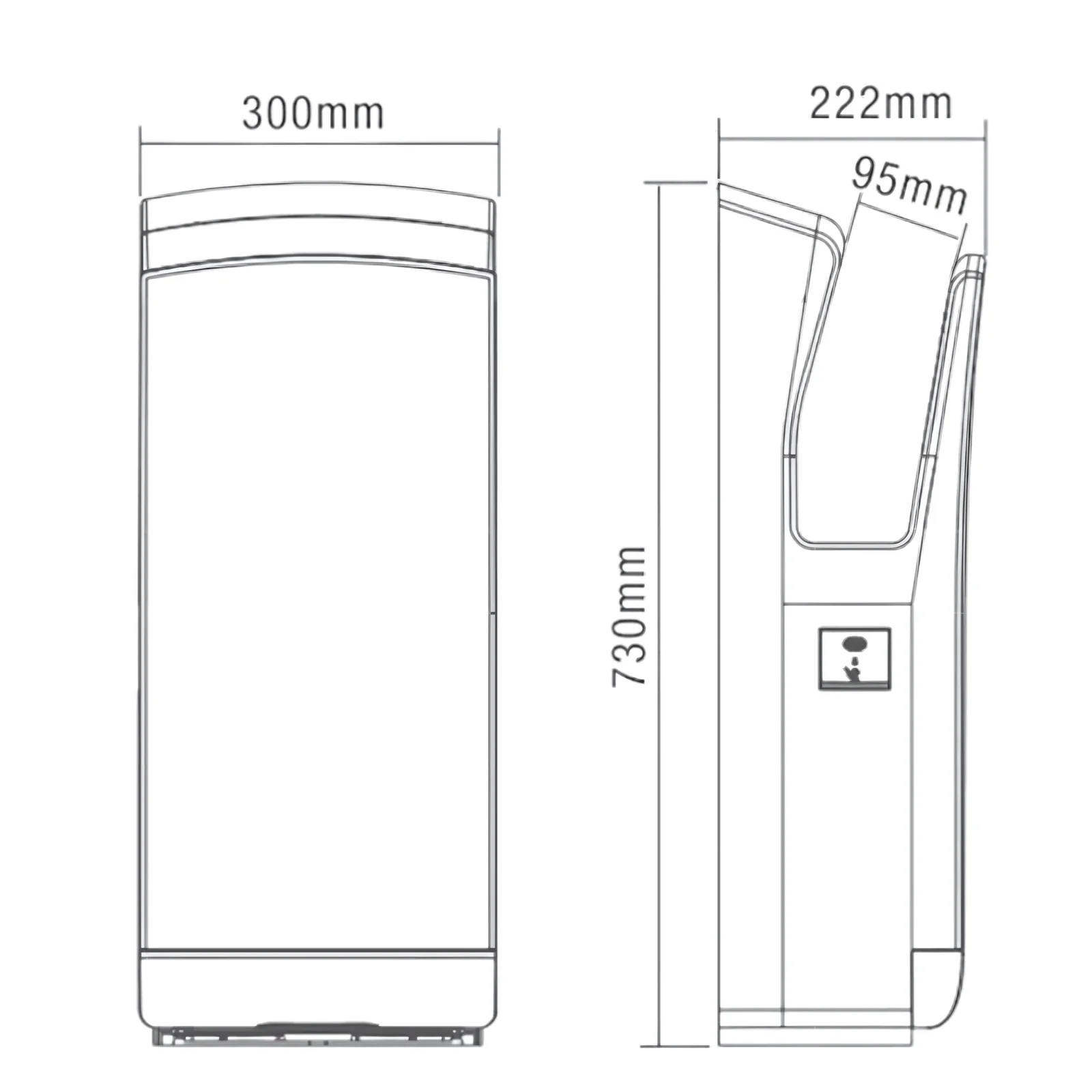 Dolphy’s PEAK Jet Hand Dryer is perfect for high-traffic washroom facilities like airports, sports centres, clubs, and cinemas. It features dual peak airflow and a durable 304 stainless steel body. It can be hard-wired by an electrician or used with the provided cord and plug.