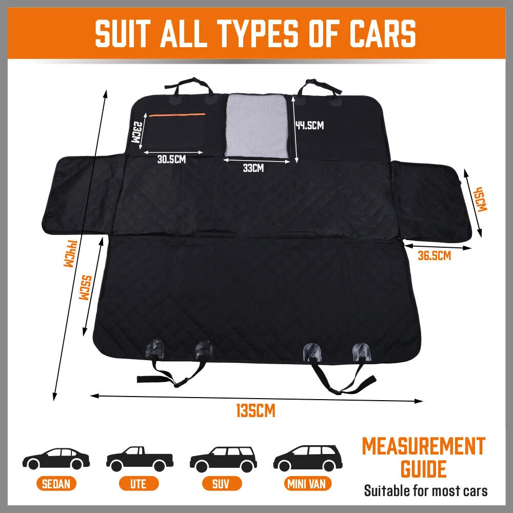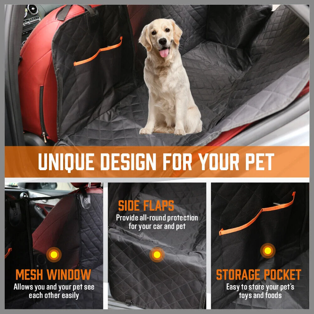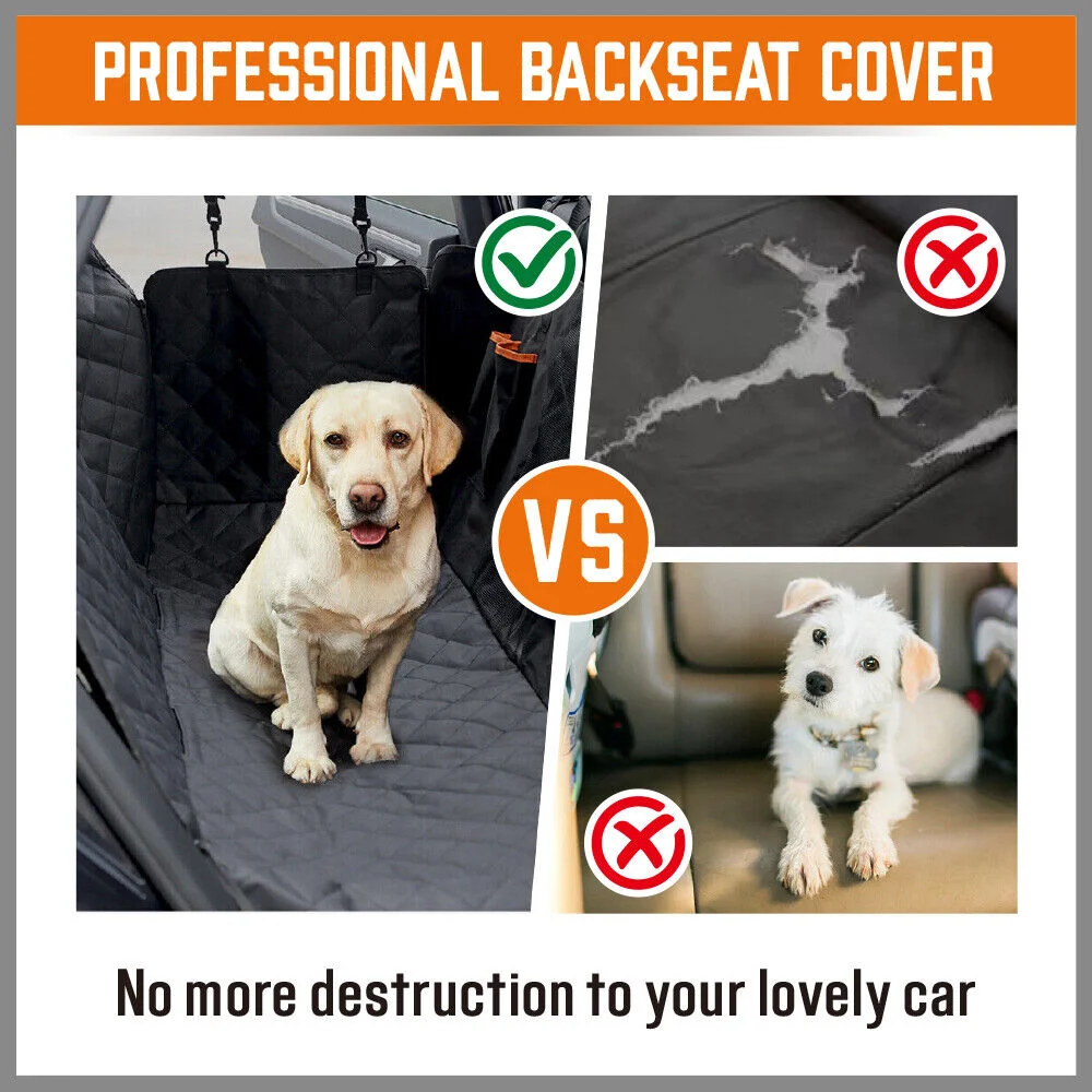 Durable Pet Seat Cover:The back seat cover uses special multi-layer process. The combination of 600D Oxford fabrics,comfortable PP cotton mat, polyester and non-slip rubber backing, Comfortable and Waterproof, totally keep your seat from any liquid, dirt, scratches, hair fur. Etc.