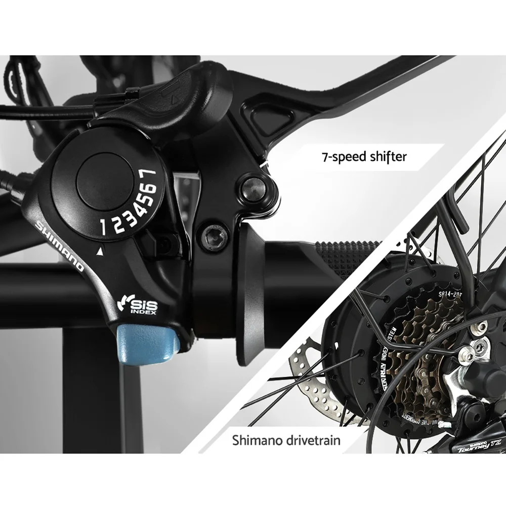 Have you been looking for a more sustainable way to get around? Or do you want more freedom to enjoy the great outdoors? Take your fitness to the next level and find a unique solution to your daily commute with the Phoenix 20" Electric Urban Bike. With its powerful Hi-Torque 250W motor and built-in 36V 10.4Ah Li-ion battery, the Phoenix Electric Bike can ride up to 40 km on a single charge and reach speeds of 25 km an hour. The bike is made from premium parts such as the Shimano 7-speed gear system and derailleur and features a quick-folding design so you can take it with you anywhere, from road trips to your daily commute. You'll find it easy to ride a wide range of terrains from the mountains to the suburbs, and you'll be able to do it in safety and comfort with the durable wheels and tyres, aluminium frame, dual front and back brakes, a front suspension fork and a comfortable saddle for the perfect ride. Features a front light and reflector for added safety during your evening ride, and a clear LCD display panel for total control at all times. Your package includes two wrenches, three hexagonal wrenches, a bolt driver and a security key for easy installation and maintenance. Forget driving a bulky car around the city or in the country – enjoy a more sustainable and healthier ride with a Phoenix 20" Electric Urban Bike.
