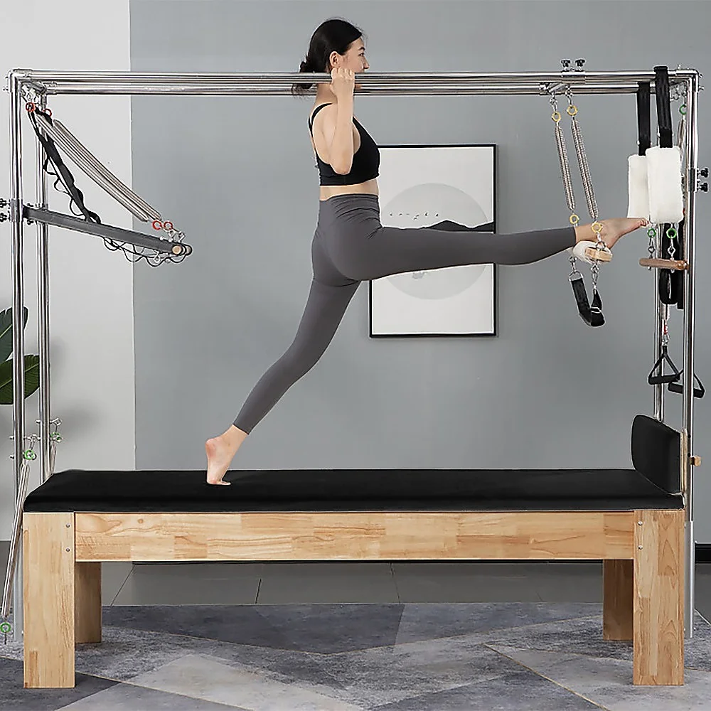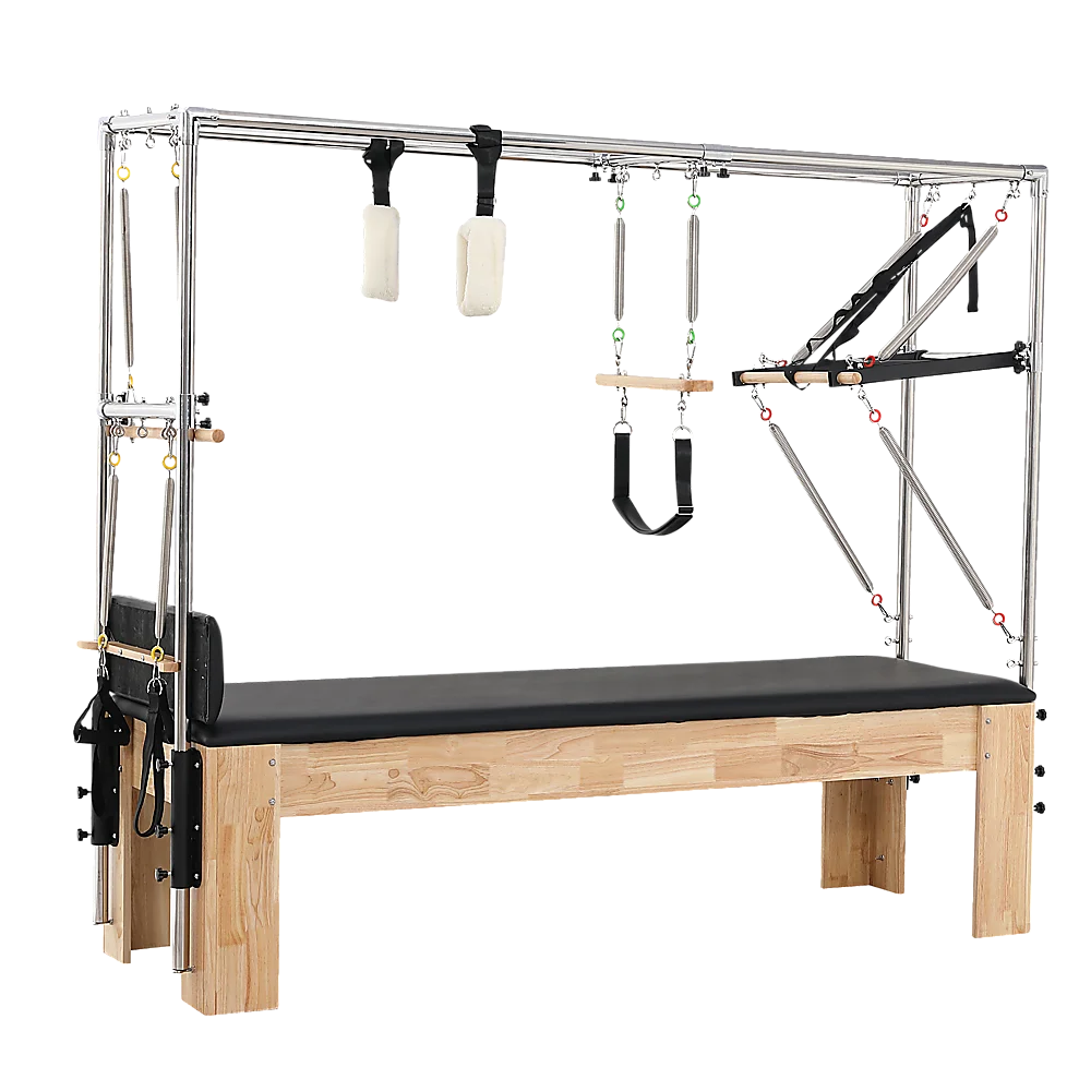 Randy Travis Machinery presents the Pilates Trapeze Table, a meticulously crafted trapeze system that boasts both elegance and functionality.