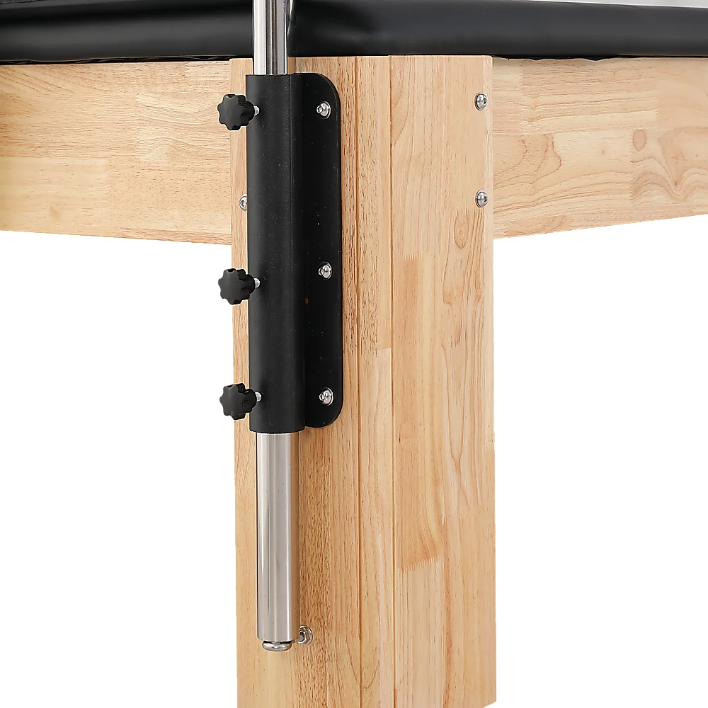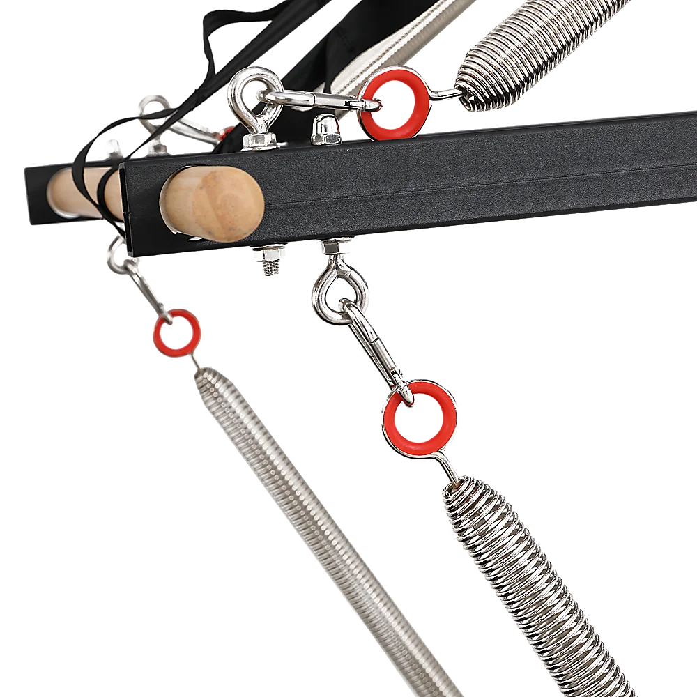 Our Pilates Trapeze Table includes a robust stainless steel trapeze tower, an adjustable push-through bar, a roll-down bar, and trapeze springs - providing maximum versatility for your workout routines. Rest assured, you'll feel secure and steady while engaging in acrobatic workouts. While assembly is required, a comprehensive manual is provided to guide you through the process.