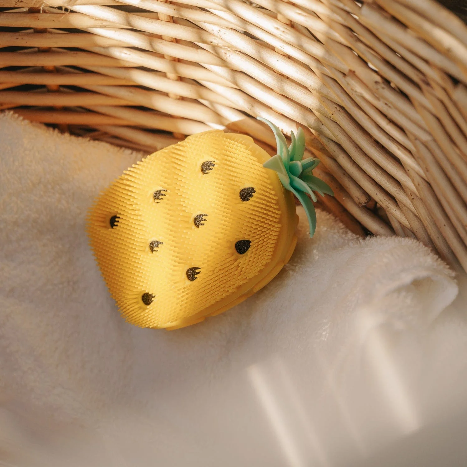 Pineapple bathmate, complete with sponge insert, is made of silicone bristles that gently exfoliate skin for a super smooth clean.