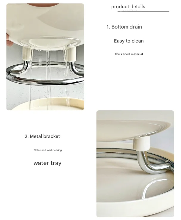 - Integrated Drainage System: The base of the bowl features drainage holes, allowing you to wash fruits directly in the bowl. Excess water collects in the separate detachable base tray, keeping your countertops dry and your fruit well-ventilated.