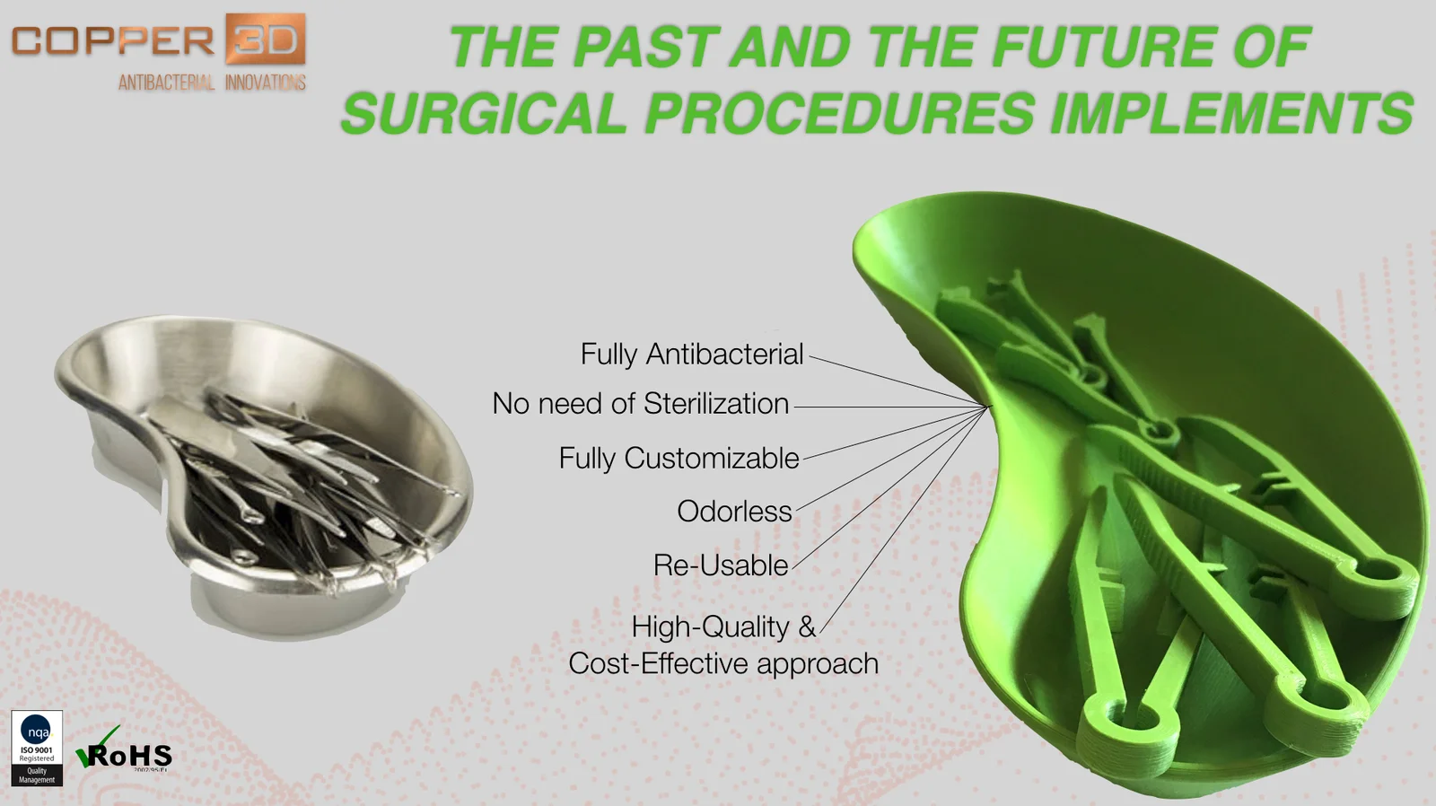 Copper 3D PLActive is an innovative Nanocomposite 3D printer filament developed with proven high-quality EasyFil PLA compound and a patented, scientifically validated and highly effective Nano-Copper additive. PLActive filament is FDA registered and eliminates more than 99.99% of fungi, viruses, bacteria and a wide range of microorganisms.